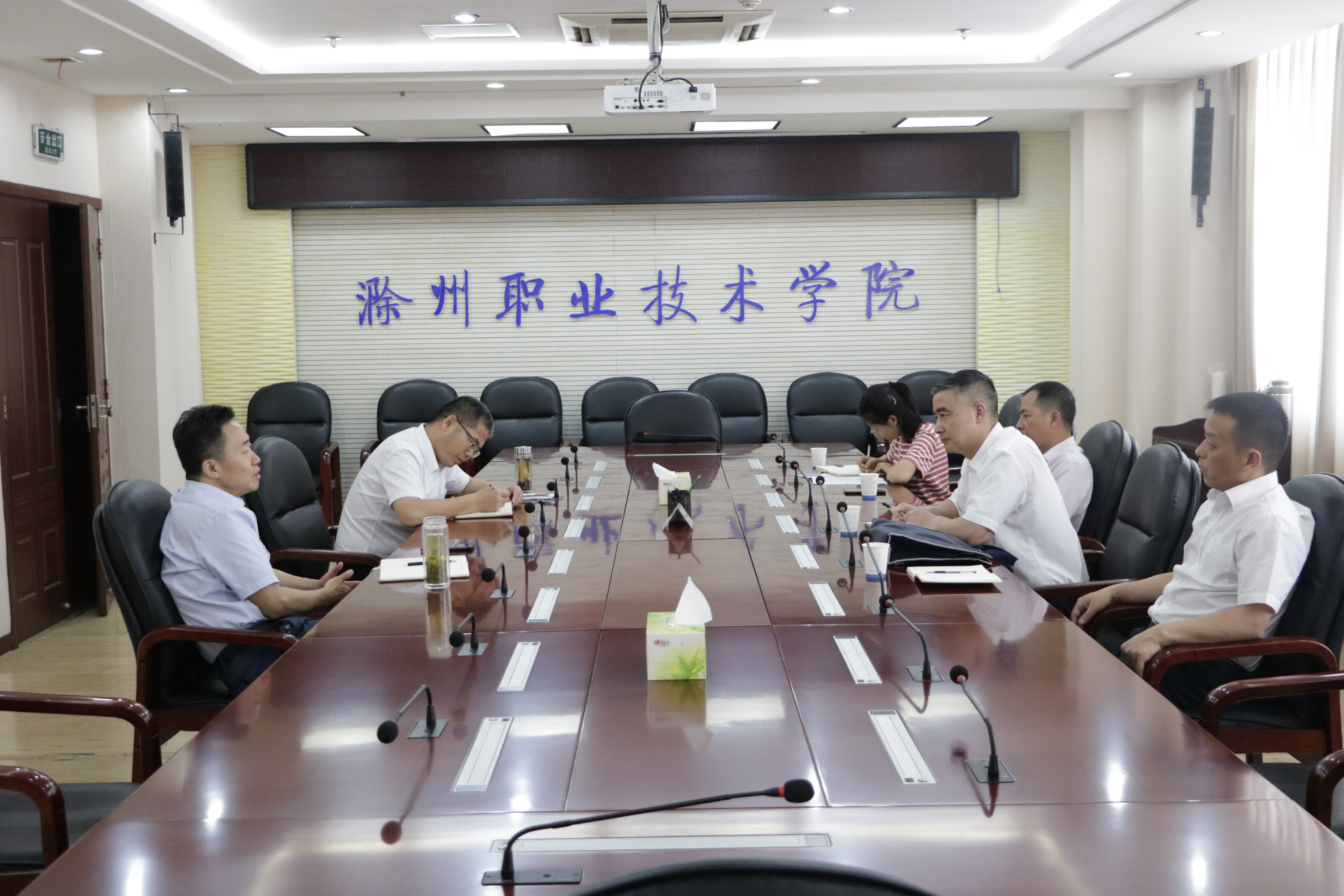 6月16日上午,在市直工委书记杨洲带领下,中石化滁州公司总经理、党委书记汪紫辉一行来awc官网交流校企合作事宜,校党委副书记杨家庆出席,招生就业处副处长周多道及有关同志参与交流。