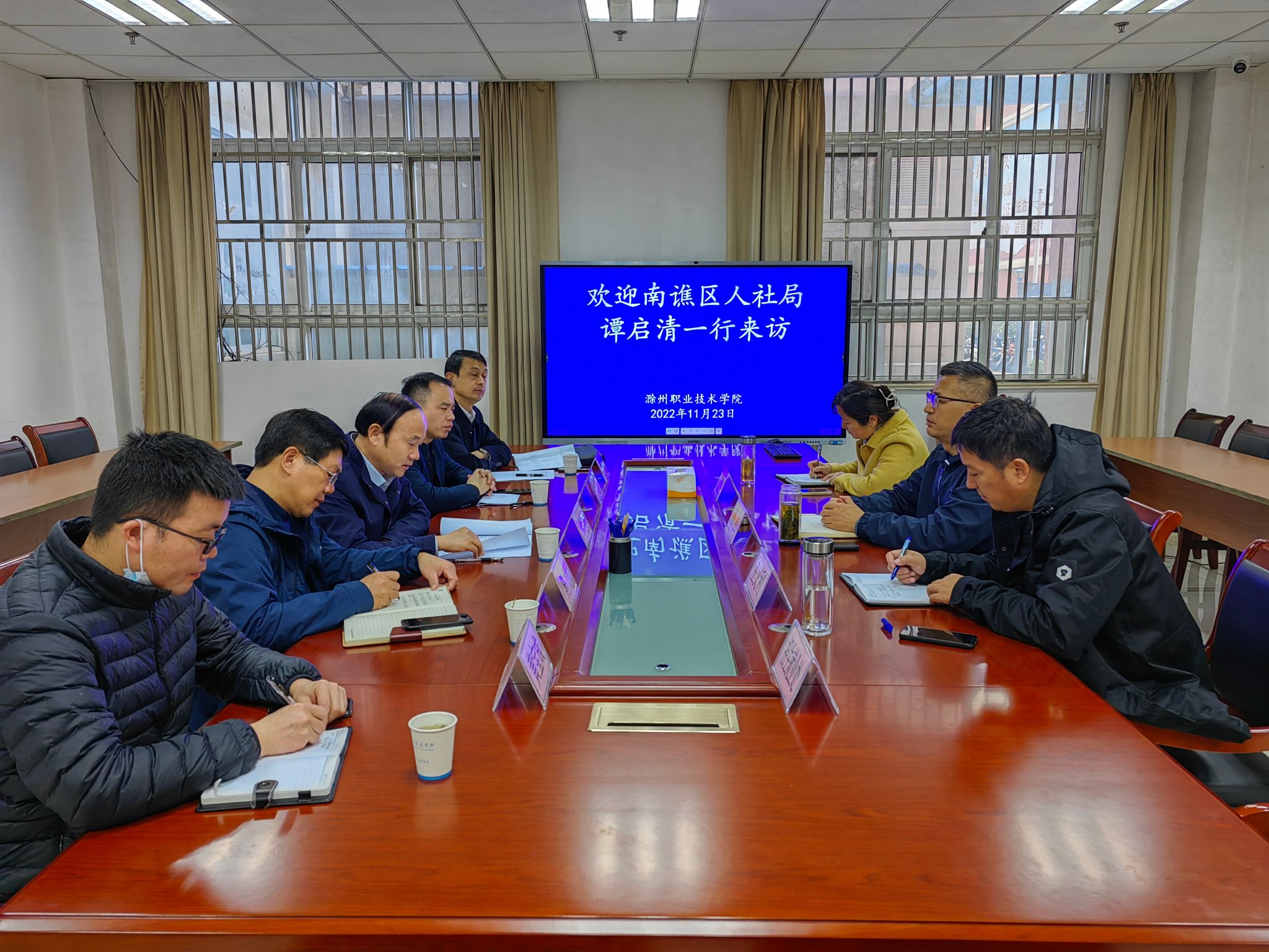 11月23日上午,南谯区人力资源和社会保障局局长谭启清带领南谯区营商环境服务中心主任付德才、南谯区教育体育局党工委副书记陈大兵、南谯区人力资源和社会保障局副局长刘立祥、南谯区公共就业和人才管理服务中心黄宝成一行来awc官网交流洽谈校企合作、实习就业等相关事宜。校长助理、招生就业处处长、滁州职业教育集团秘书长穆松热情接待了谭启清一行,招生就业处副处长王义利及相关人员参加了会议。
