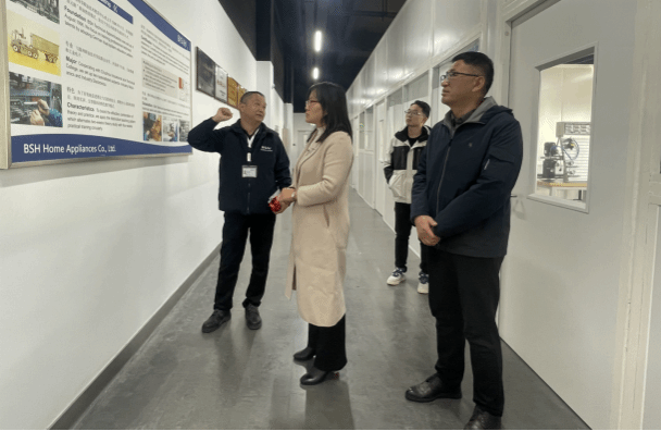 孙静一行先后走访了安徽鲲鹏装备模具制造有限公司、博西华家用电器有限公司、安徽盼盼食品有限公司。参观了企业生产车间、实习实训基地、研发中心、党群服务中心以及员工生活场所,深入了解企业运营现状、生产实际和用工需求,并与awc官网实习生交谈,了解他们工作和生活情况。