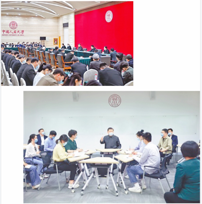 五四青年节到来之际,4月25日上午,习近平总书记来到中国人民大学考察调研,在人大立德楼观摩思政课智慧教室现场教学并参与讨论,同师生代表座谈并发表重要讲话。4月29日下午,马院支部全体党员老师在线上QQ群,在线学习了习近平总书记在中国人民大学考察时的重要讲话精神,全体教师就学习习近平总书记人大考察重要讲话精神的思考和体会进行深入交流。