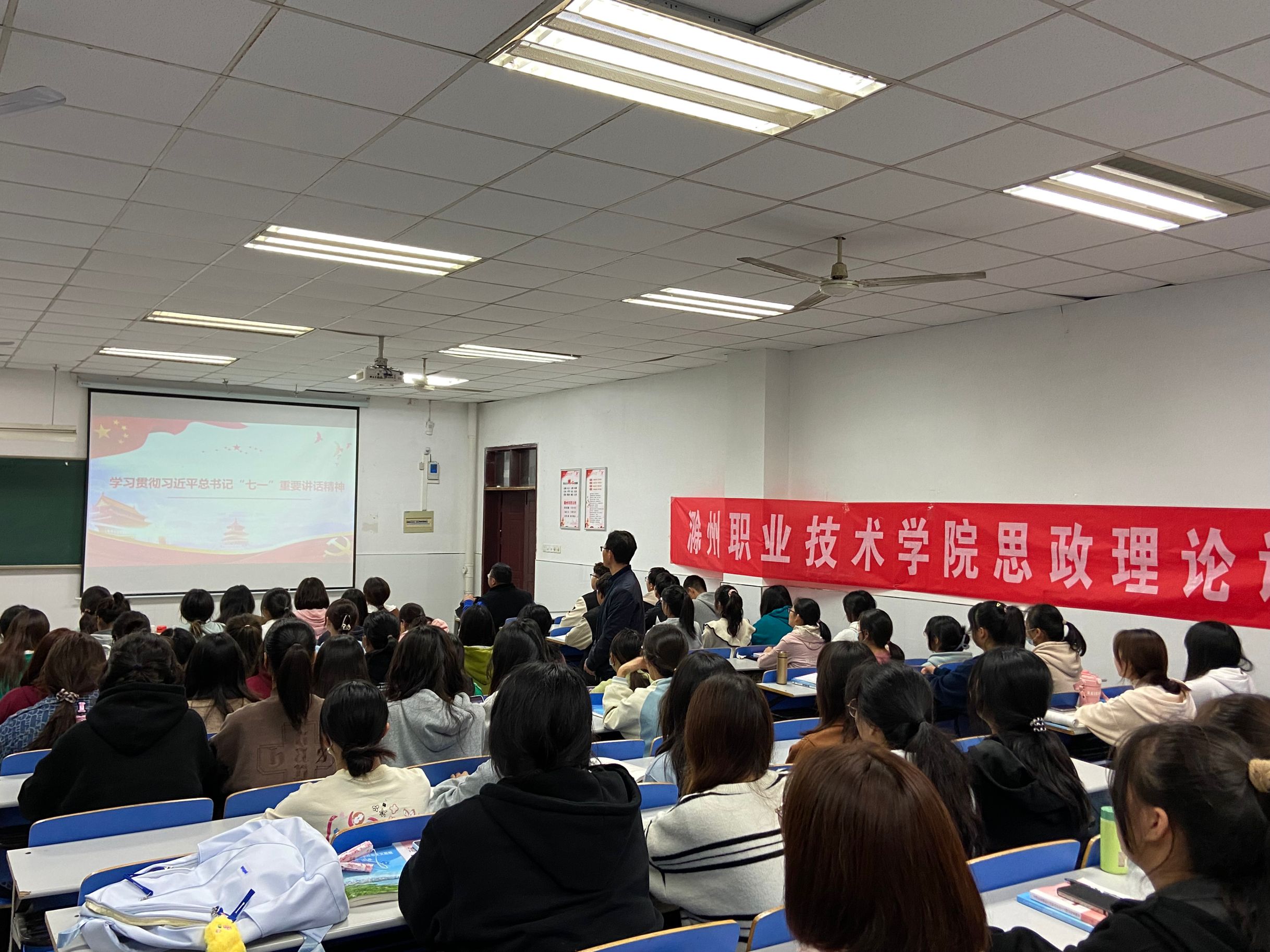 10月28日,马院汪立超副教授在1102教室为2022级商务英语1班、2班开展思政理论讲座,汪立超副教授主讲的题目是:学习贯彻习近平总书记“七一”重要讲话精神。