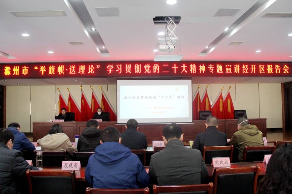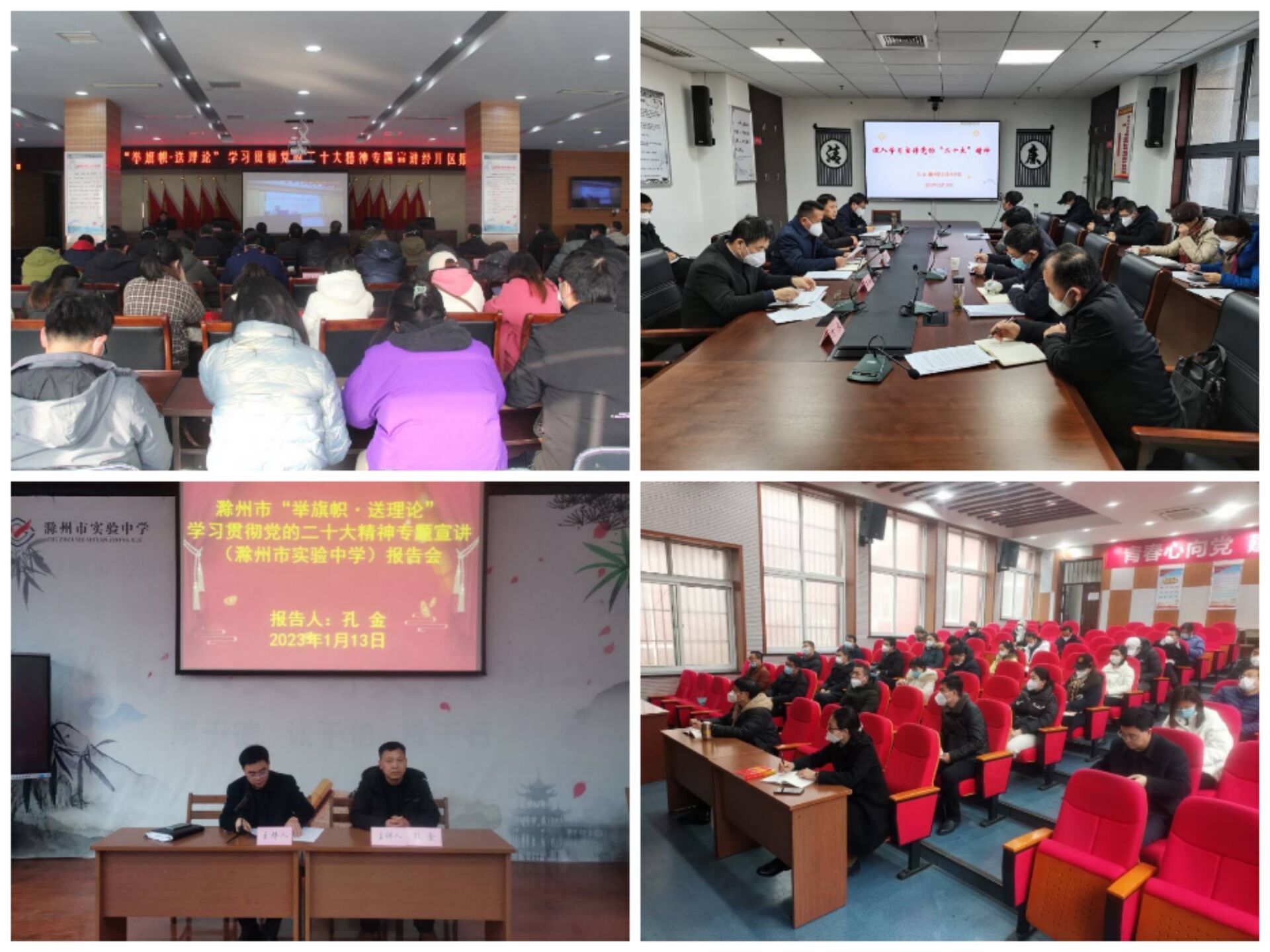 学习好、宣传好、贯彻好党的二十大精神,是当前和今后一个时期的首要政治任务。按照市委宣传部统一部署,滁州市理论宣讲团成员赶赴机关、学校、企业、农村和社区开展“举旗帜·送理论”党的二十大精神理论宣讲。滁州市理论宣讲专家库成员、马克思主义学院孔金副院长先后于12月30日、1月6日和1月13日在市农村农业局、市经开区管委会和实验中学开展党的二十大精神理论宣讲。