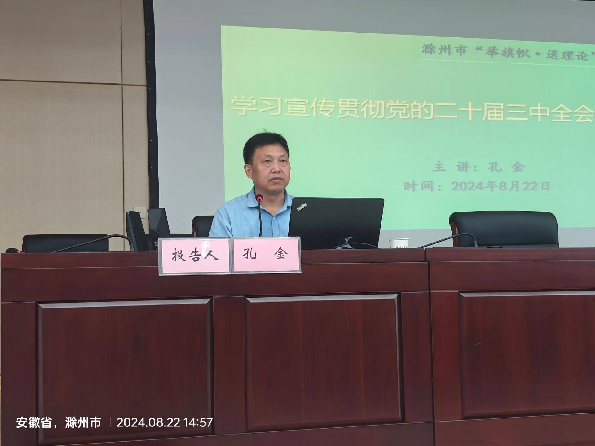 孔金聚焦市委有关学习贯彻党的二十届三中全会精神专题宣讲工作部署,结合交通运输实际,向市直交通运输系统党员干部作了题为《学习宣传贯彻党的二十届三中全会精神》的宣讲报告。报告对党的二十届三中全会精神进行了系统宣讲,深刻阐释了党的二十届三中全会的精神内涵。宣讲报告内容主题鲜明、站位高远、重点突出、层次分明、举例生动,向大家全面讲解了党的二十届三中全会的历史背景和精神内涵,对帮助大家准确领会党的二十届三中全会精神,具有十分重要的指导意义。