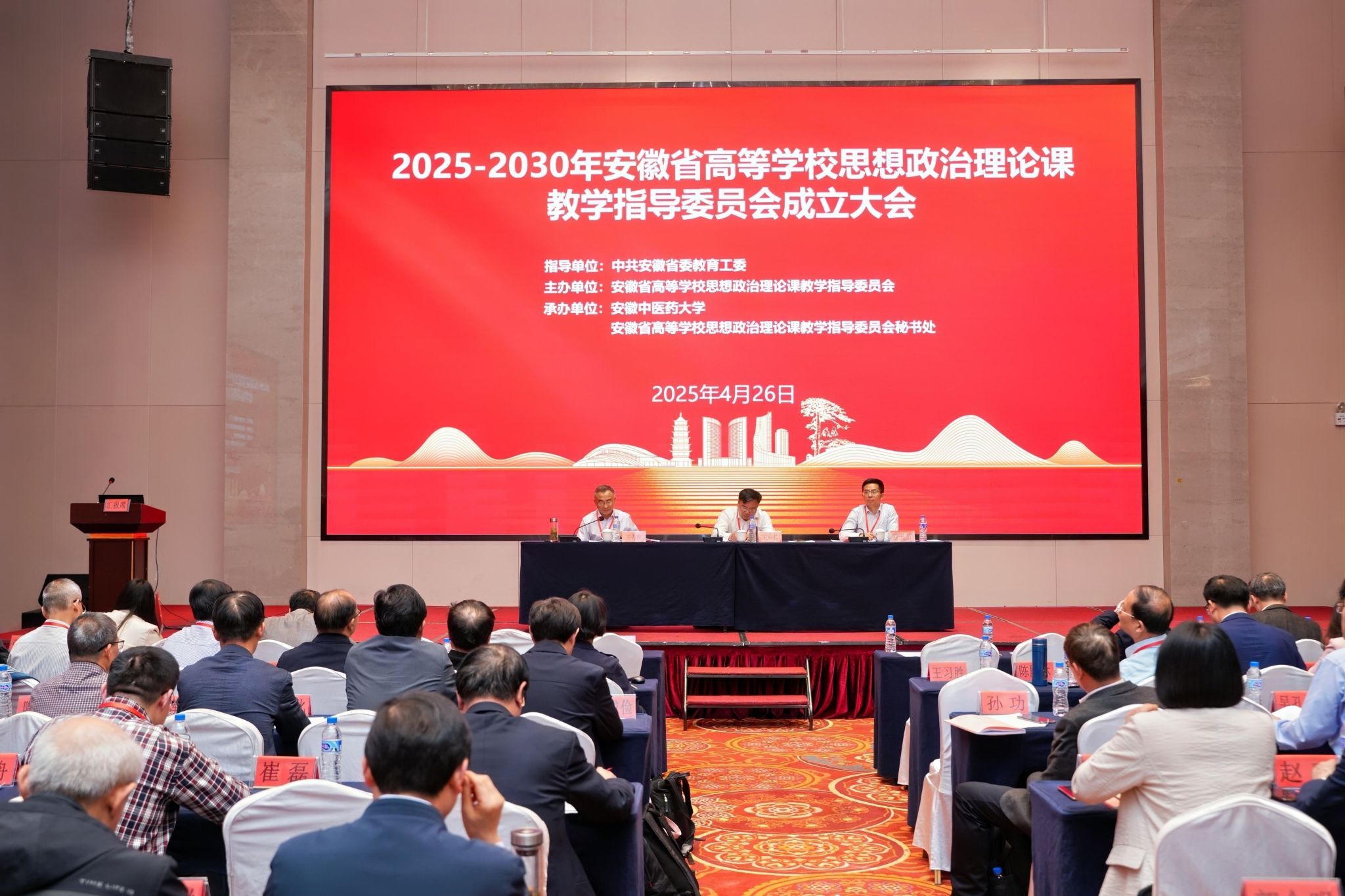 为深入贯彻落实习近平总书记关于学校思政课建设的重要指示精神和在学校思政课教师座谈会上的重要讲话精神,落实《普通高校思政课教师队伍建设规划(2025-2027年)》,深化思政课改革创新,加强思政课教育教学指导,推动习近平新时代中国特色社会主义思想铸魂育人,4月26日,安徽省2025-2030年高等学校思想政治理论课教学指导委员会成立大会在安徽中医药大学召开。本次大会由安徽省高等学校思想政治理论课教学指导委员会主办,安徽中医药大学、安徽省高校思政课教指委秘书处承办。省委教育工委副书记范奇,教育部高校思政课教指委“习近平新时代中国特色社会主义思想概论”分教指委副主任陶文昭,安徽中医药大学党委书记谢瑞瑾、党委常委罗绍明,全省高校思政课教指委主任委员王先俊,省委教育工委思政处处长王后林以及全省高校思政课教指委委员出席大会。大会开幕式由王后林主持。