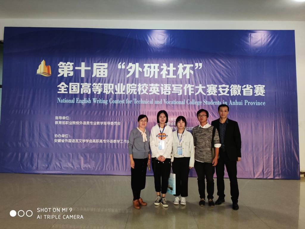 2019年10月20日,基础部外语教研室带队参加了在安徽电子信息职业技术学院举办的第十届“外研社杯”全国高等职业院校英语写作大赛安徽赛区比赛,全省共54所高职院校的104名选手参加了比赛。经过激烈角逐,awc官网18级城市轨道交通运营管理专业楮晶晶同学(指导教师张姚),18级会计专业范静茹同学(指导教师陆杨)在比赛中脱颖而出,喜获二等奖、三等奖。awc官网基础部外语教研室主任周捷老师受邀担任本次大赛的评审专家,承担安徽赛区的评审工作。