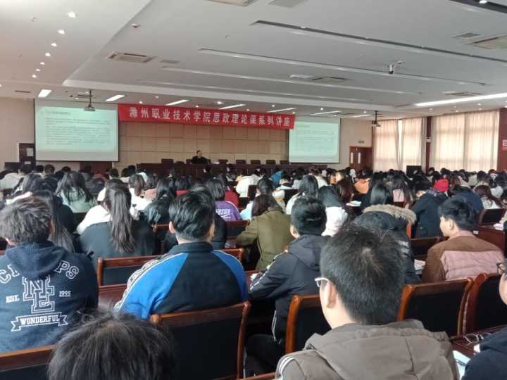 3月7日,思政部邀请中国作家协会会员、安徽省作家协会理事、滁州市文联副主席贾鸿彬先生为我校学生开展理论讲座。贾鸿彬主讲的题目是“《小岗村40年》的‘史记’意义”。讲座由思政理论课教师张军副教授主持,学校师生220余名在综合楼五楼报告厅聆听了讲座。