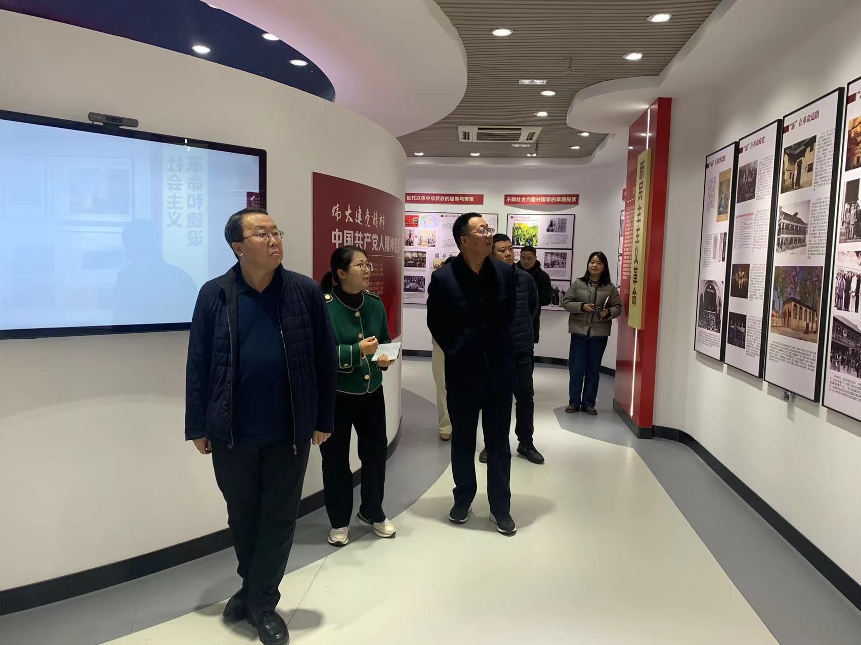 马克思主义学院讲解员郑万莉向内蒙古农业大学职业技术学院郭海清一行介绍了场馆建设的基本情况、场馆特色与场馆展板内容,着重介绍了中国革命、建设、改革和新时代新征程的百年历史,突出本馆致力于打造“理论教学宣讲+虚拟现实交互+研讨交流+户外实践”的立体化教学模式,为深入推动我省大中小学思政课一体化理论研究和实践探索提供工作平台、实践经验、理论支撑和党建活动。