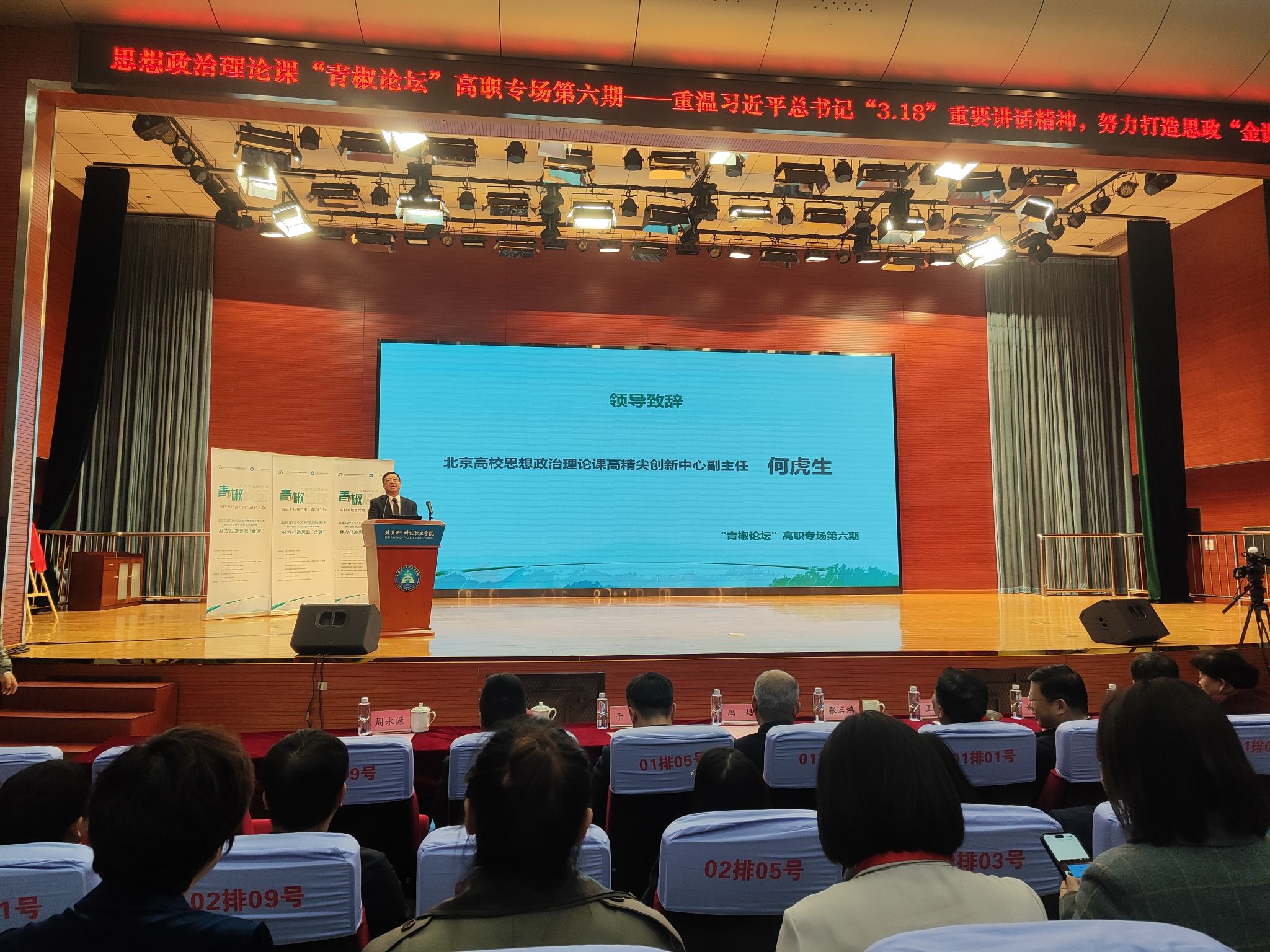 本次“青椒论坛”论坛分为开幕式、青椒论坛、论坛总结三个环节,采用线上线下相结合的方式进行。在开幕式上,北京市委教育工委、北京电子科技职业技术学院等领导出席开幕式并致辞。在论坛展示环节,来自北京、上海、广东、天津、湖南、新疆、内蒙古等地的8位青年教师分别作了精彩展示分享。首都经济贸易大学原党委书记冯培,中国社会科学院马克思主义研究院党委书记、院长辛向阳对展示的内容作了精彩的点评和指导。在闭幕式上,北京高校思政课高精尖创新中心北京青年政治学院分中心领导、北京青年政治学院党委书记杨志成做总结发言。