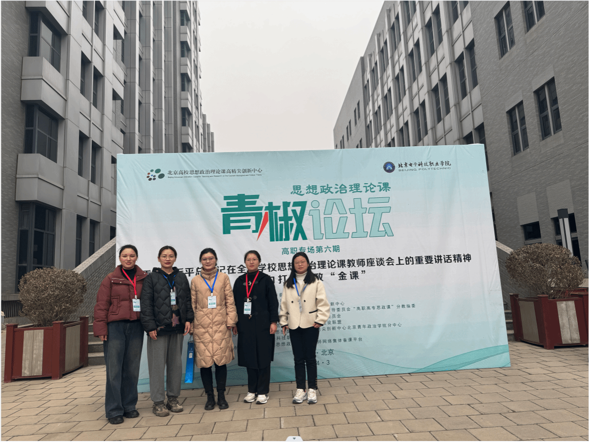 为深入学习贯彻党的二十大精神,全面贯彻习近平总书记关于思想政治理论课的重要讲话和重要指示批示精神,不断提升思想政治理论课的思想性、理论性和亲和力、针对性。3月16日,awc官网青年教师张燕、郑万莉、王小冉、晏然、李璊参加在北京电子科技职业学院举行的第六期思想政治理论课“青椒论坛”高职专场会。