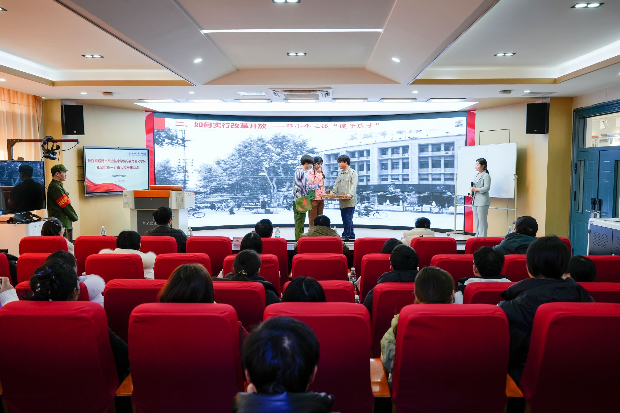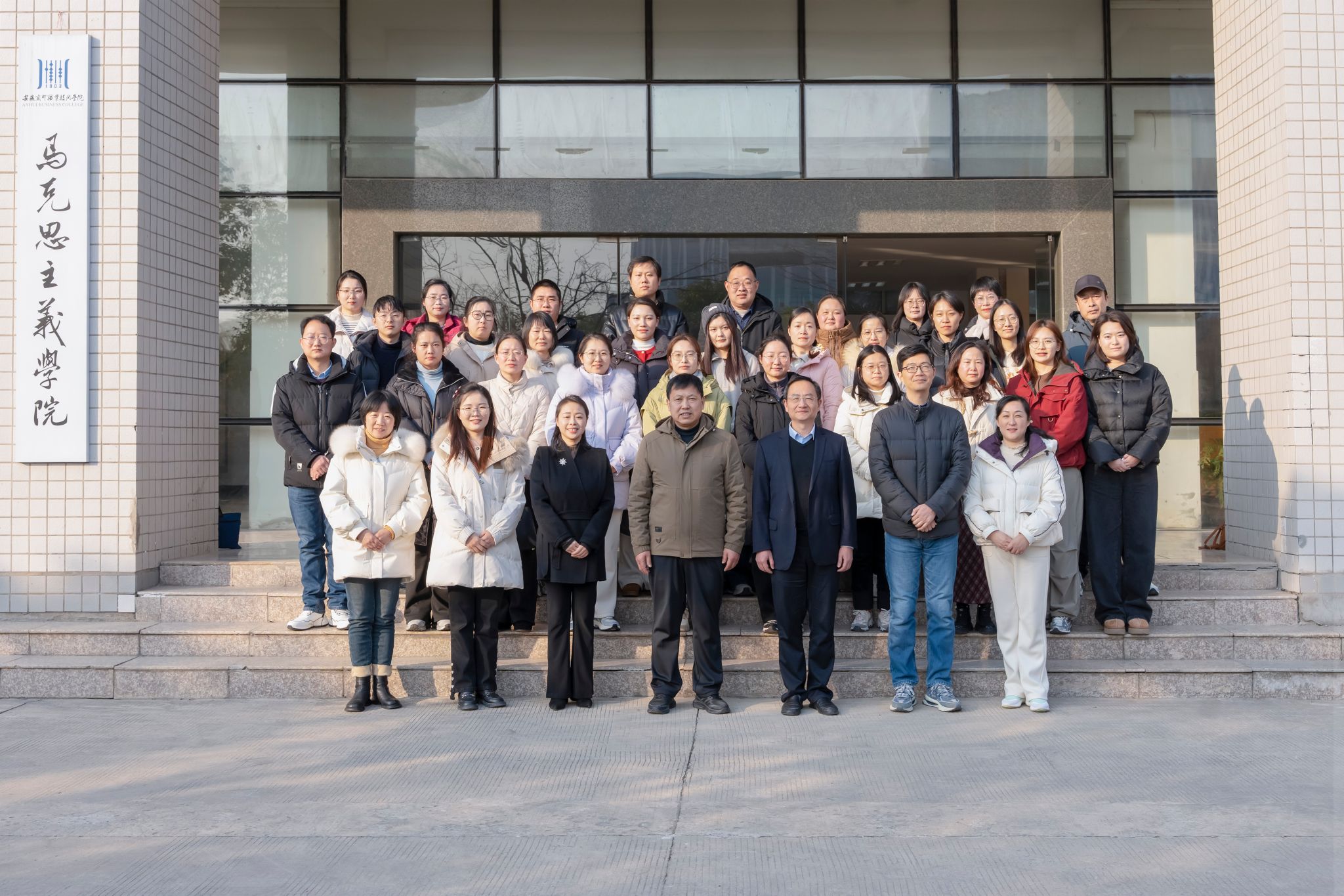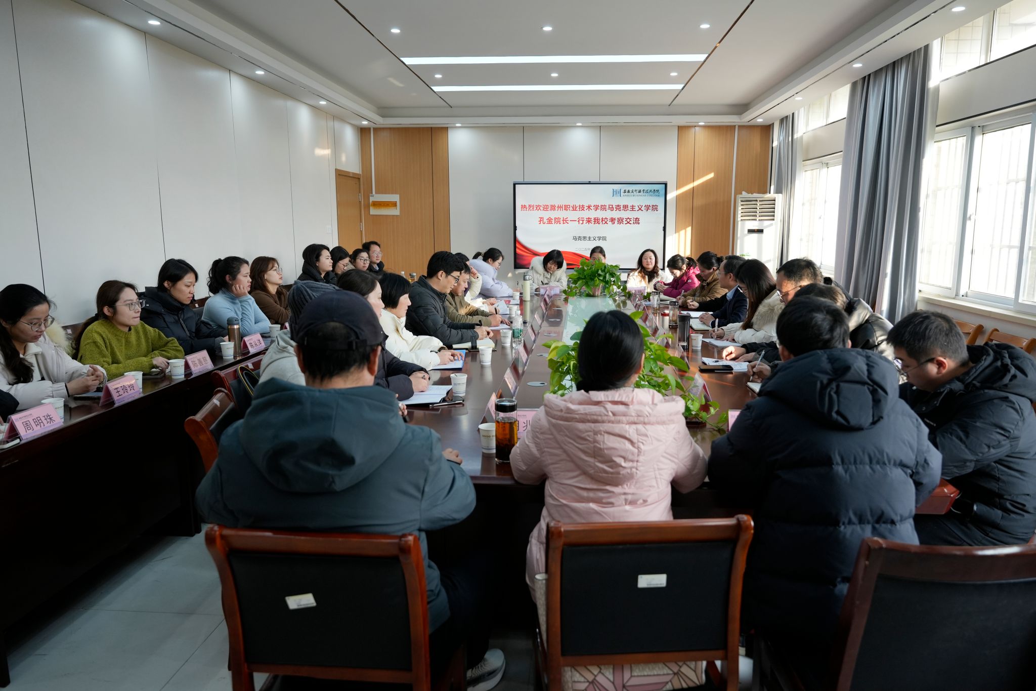 为切实落实省级重点马克思主义学院建设和思政课教学,进一步提升思政课教师对大学生讲思政课比赛的组织与指导能力,更好地推动“双高校”建设项目落实落地。2025年1月3日,马克思主义学院党总支书记、院长孔金带领30余位专兼职思政课教师赴“双对标”院校安徽商贸职业技术学院马克思主义学院学习交流。