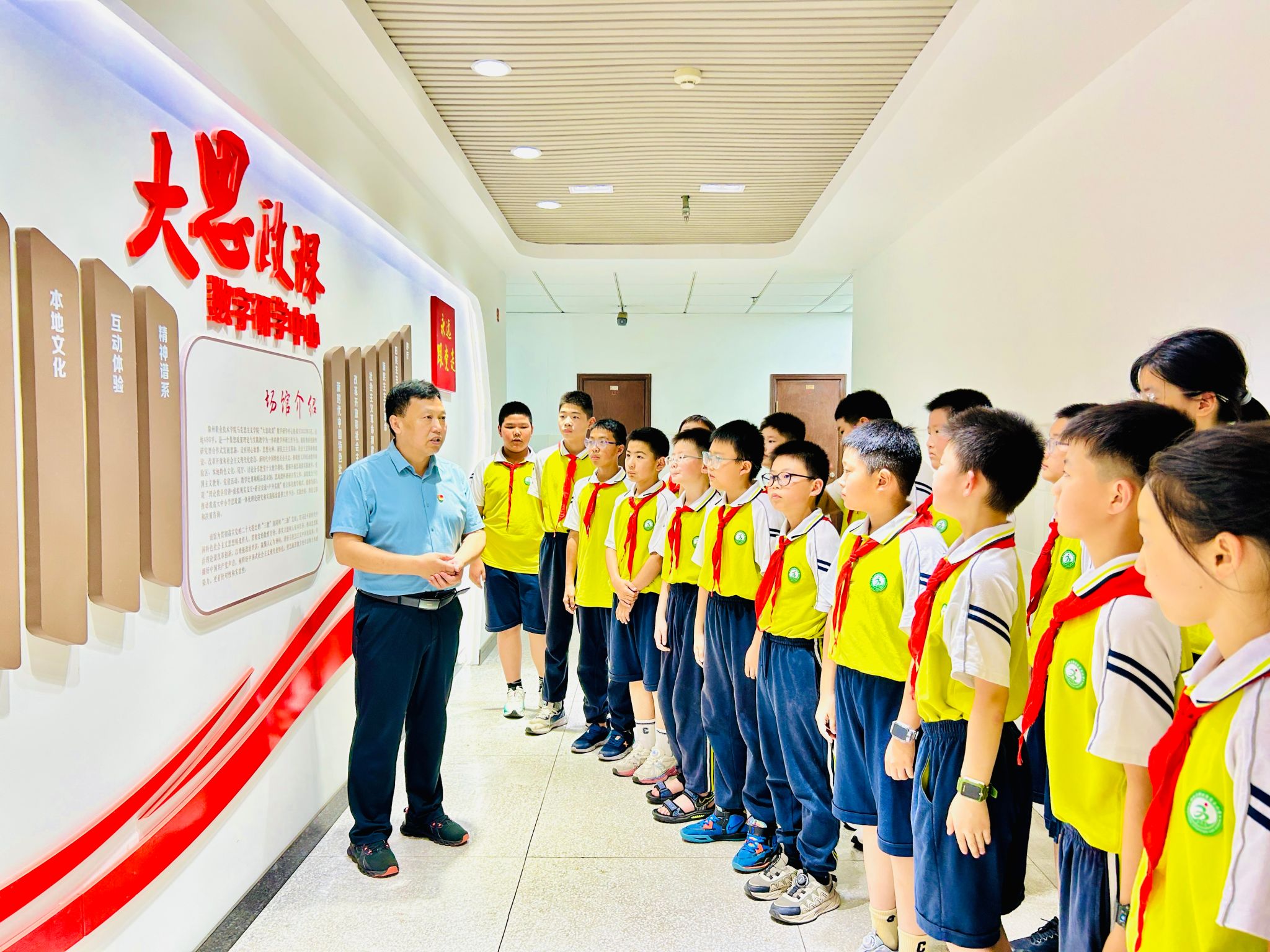 活动现场,孔金向师生介绍了场馆建设的基本情况、场馆特色,思政教师戚婷婷详细讲解了场馆展板内容,将马克思主义理论知识、中国共产党奋斗历程和社会主义建设成果,以生动鲜活的形式呈现在师生眼前。在体验区,学生们身临其境地感受革命先辈的奋斗场景,在互动答题环节,孩子们踊跃参与,深化对红色文化的认知。