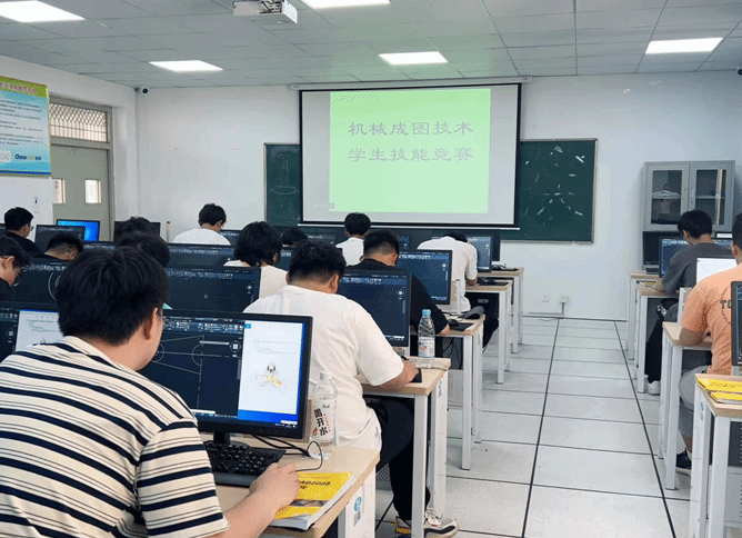 本次竞赛面向21级机制和22数控专业学生,对此次大赛采取个人赛,共有56人报名参赛,规模宏大。本次大赛旨在让同学们深刻学习工匠精神,培养同学们的创新意识及激发同学们的学习热情。竞赛内容按照规程分别考核学生对于机械类产品三维模和工程图绘制的设计能力,考查学生对机械产品的识图及绘图能力。