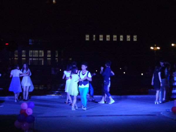 舞会开始前,同学们都怀着期待的心情,静候着开场。一曲美轮美奂的《惊鸿舞》拉开了此次舞会的序幕。随后浪漫的华尔兹将舞会的浪漫氛围推向极致,在场的同学们在领舞者的带动下,加入到舞蹈的阵营中,各自邀请舞伴,随着音乐翩翩起舞,机电系的陈琴老师也上台和舞伴跳了一段华尔兹,尽现优雅迷人的一面。随后汽车系的一段激情澎湃的舞蹈《千方百计》high翻全场。舞会的尾声同学们手拉着手奔向会场的喷泉中,快乐舞蹈。在欢笑声中,舞会圆满落幕。