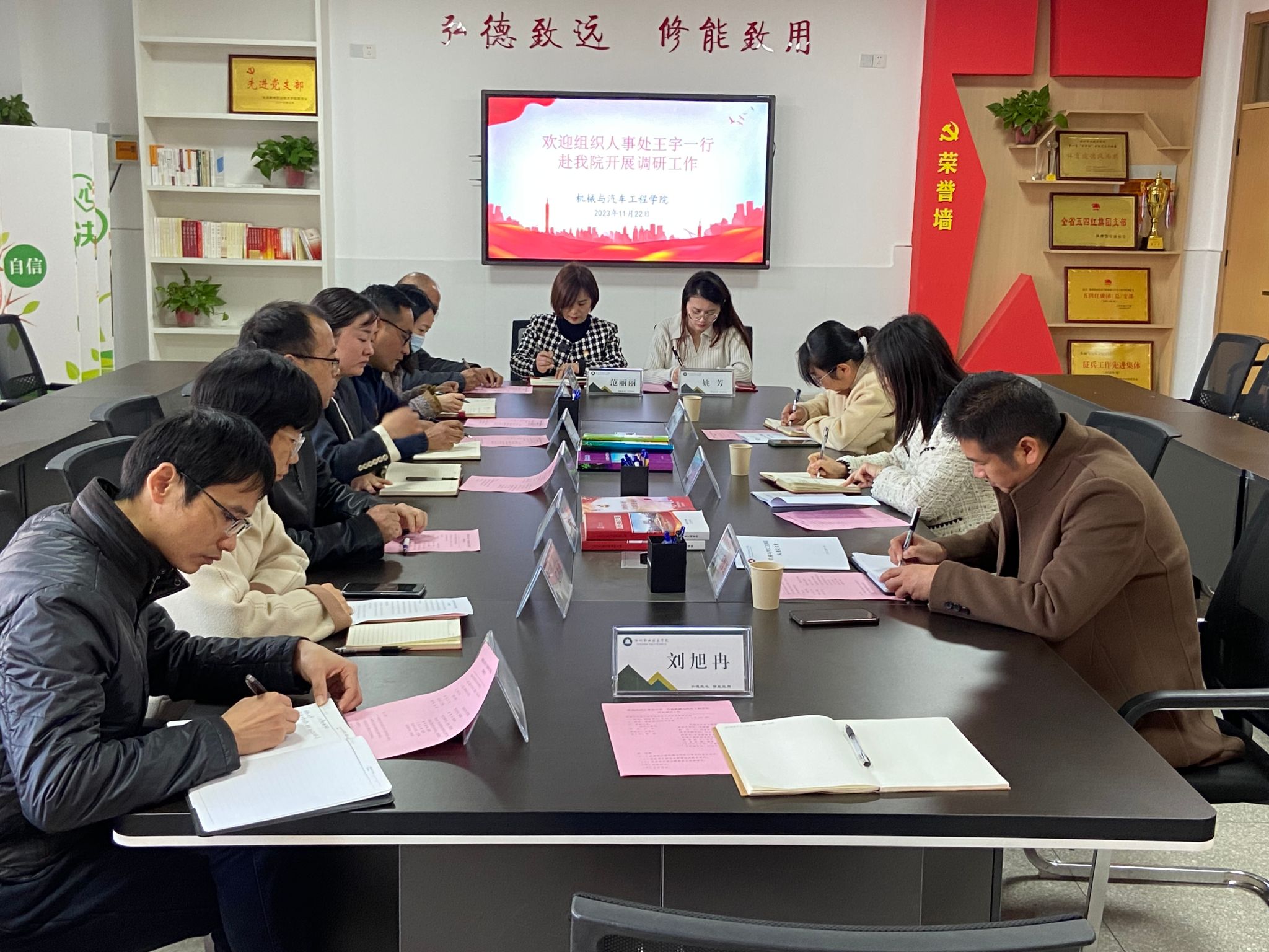 11月22日上午,校党委委员、组织人事处处长王宇深入机械与汽车工程学院进行调研,组织人事处副处长王厚红陪同调研,机械与汽车工程学院党政领导班子成员及教师代表参与此次调研。