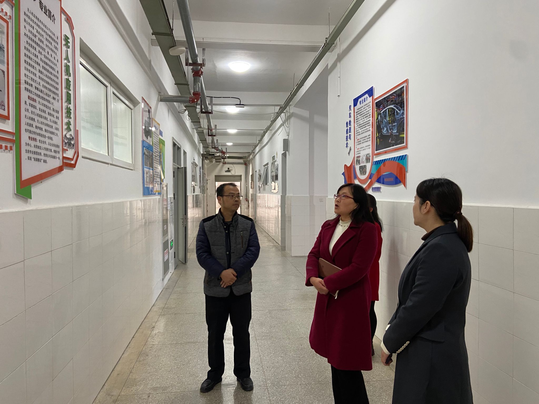 孙静实地查看机汽学院党建阵地、走廊文化墙、汽车工程系党支部活动室后前往会议室开展座谈。会上,朱婷婷从机械与汽车工程学院的岗位编配、职称情况、党组织设立等方面进行汇报,杨章林就专业群建设、学生培养、实习、就业、学生竞赛、校企合作、实验室建设等方面进行汇报,吴佳佳就主题教育的开展情况进行汇报。