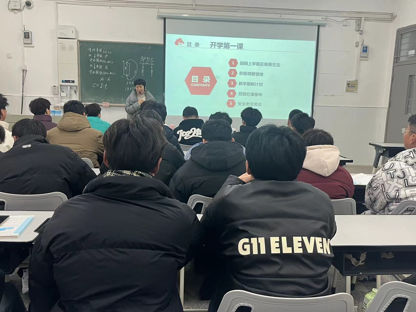 新学期伊始,22新能源三班在辅导员吴佳佳的组织开召开了“开学第一课”主题班会。这堂课不仅回顾了上学期和寒假工作,作好,还积极调整了同学们的新学期情绪,为新学期制定了计划,同时强调了班级纪律和安全问题。
