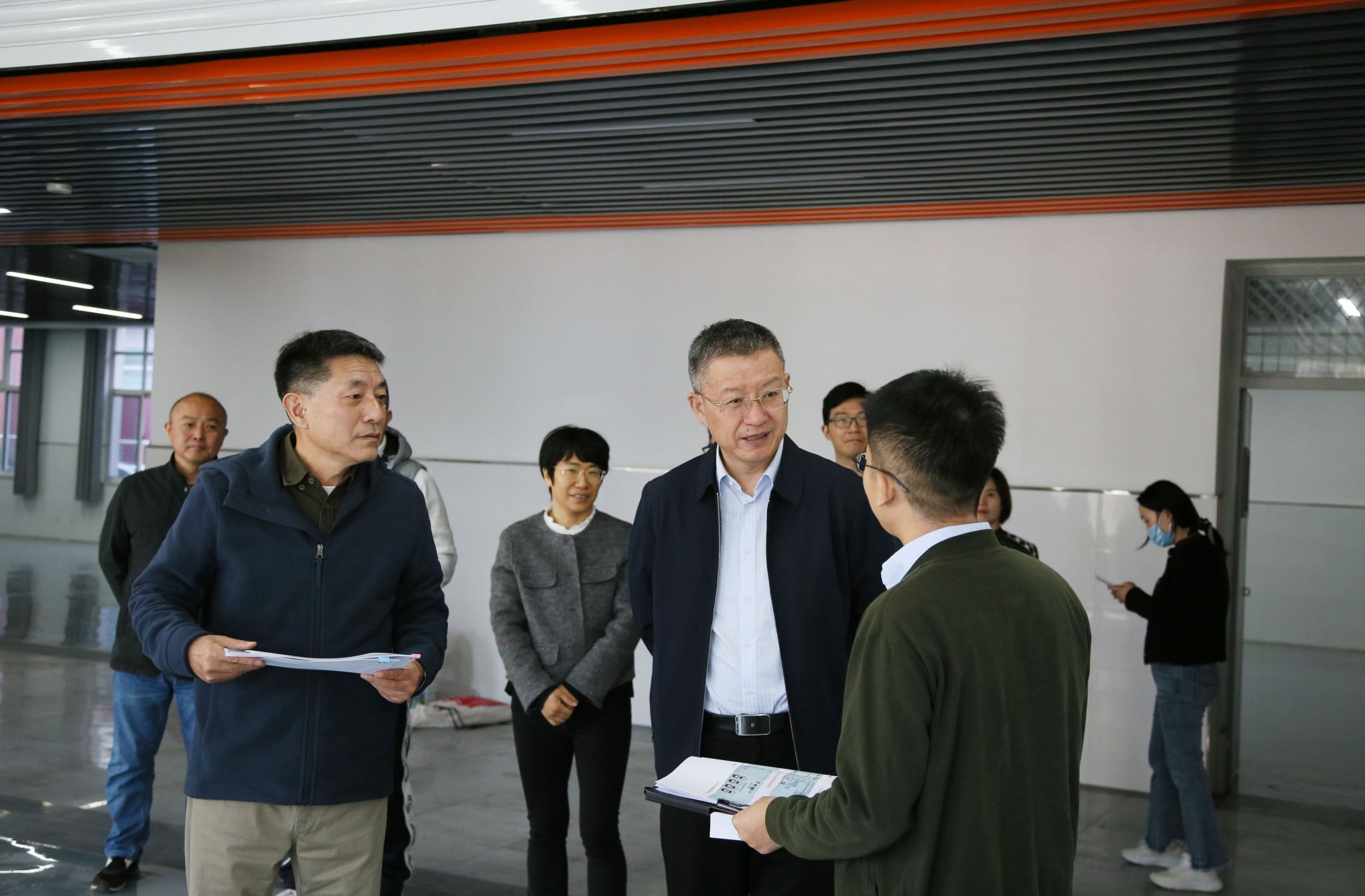 曹付忠一行实地考察六号楼在建新能源汽车基础实训基地建设情况,对六号楼的整体布局和未来规划建设提出了指导和建议。