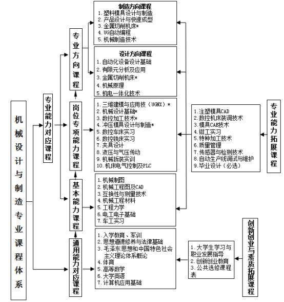 专业的课程体系充分考虑了目前工业企业对技能型人才的各项能力要求订制,遵循知识技能的够用、实用原则,突出了实践教学在整个培养体系中的重要地位,同时课程体系充分考虑到“以学生为中心”的原则,让学生可以根据兴趣进行“选课”,体现了对学生个性和特长的发展。