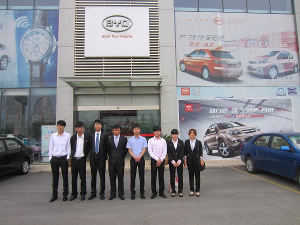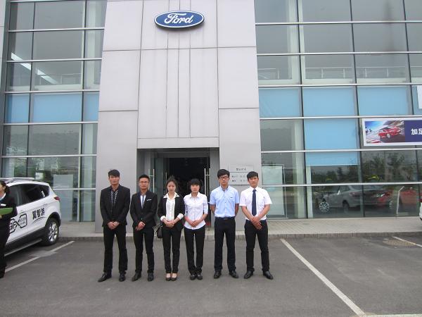 为了能够在真实的职场环境中提高实践技能,汽营专业的同学们对本次实习表现非常积极。清晨12级汽营(2)班的同学们就穿着正装来到校门口等候,有种迫不及待的感觉。在张信群教授,贾会星、张记老师的带领下。同学们分别被分配到福特、比亚迪、东风标致、长安、上海大众、雪铁龙等六家4S店实习。同学们进入各家4S店后,部门经理均给同学们召开了会议,介绍了相关事宜,其中包括店内礼仪、前台接待、售后服务等等,然后同学们根据部门要求分别进入岗位学习实践。