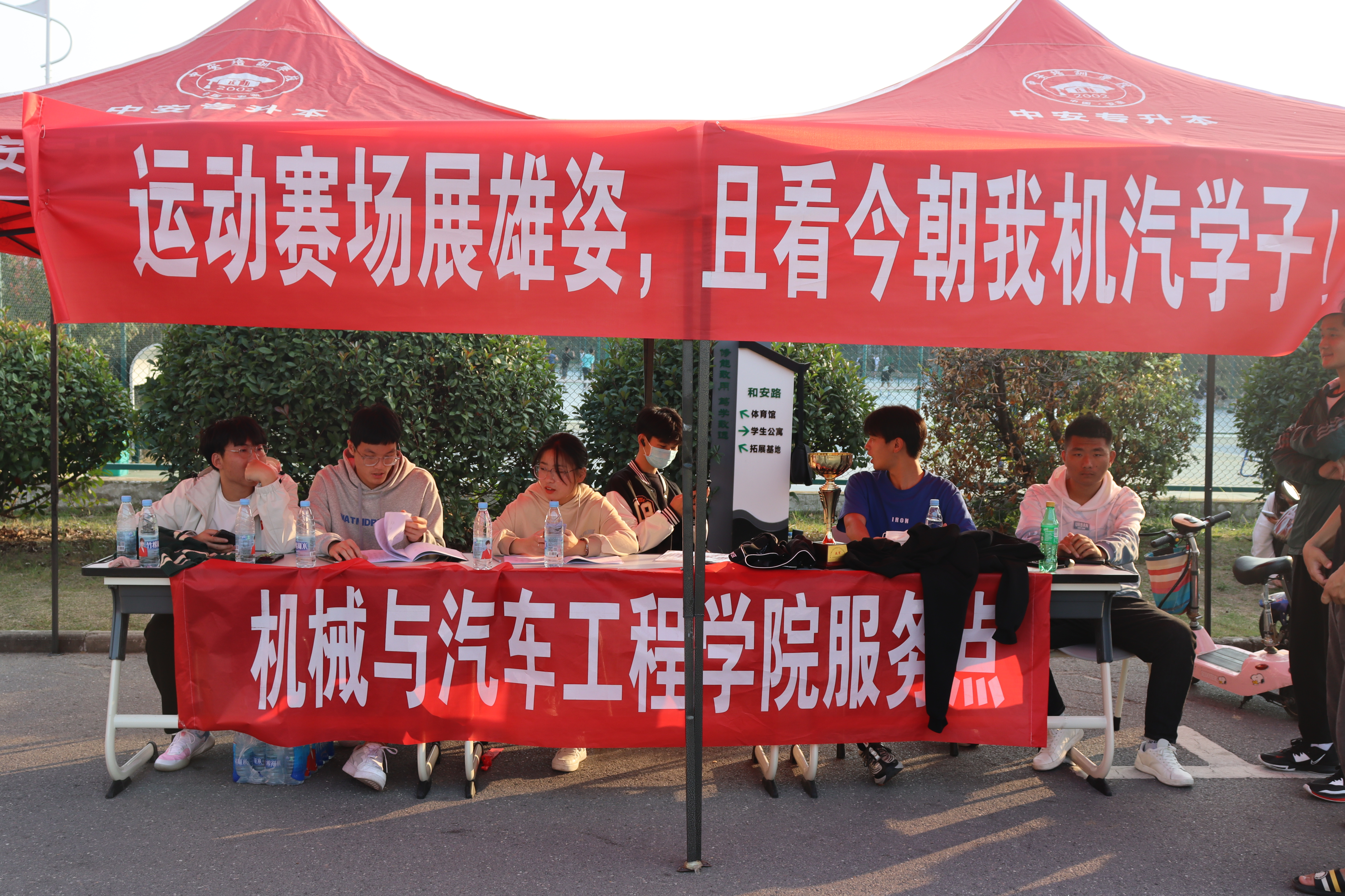 不止于学院活力飞扬的运动员,那些志愿者们也构成了一道别样的风景线,在运动会准备阶段,志愿者们有序参与到搭建帐篷,以及布置场地的任务中,为比赛做好充足的前期工作,让运动员有充足的准备迎接比赛。服务站内设有矿泉水,功能饮料等物资,所有运动员们都可以前往领取,同时服务站志愿者成员按照各自所分配的时间轮流值班,从而为运动员做好保障服务工作。在志愿者们的辛勤付出下,历时三天的运动会圆满结束。