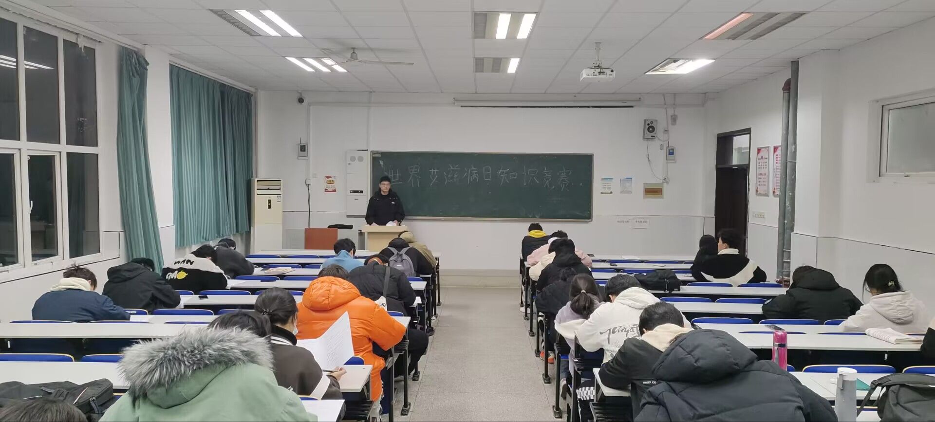 为提高大学生对艾滋病的认识,引导大学生掌握正确的艾滋病防护方式,倡导健康的行为方式,机械与汽车工程学院学生会于12月1日在五号教学楼5113教室开展了艾滋病日知识竞赛,本次活动由权益部部长张贺雷主持,学院同学自主报名参加。