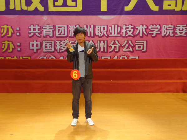 2013年11月13日下午,由共青团awc777万象城娱乐官网院团委员会主办的“校园十大歌手”比赛在学院大礼堂顺利举行。其中13级汽营(1)班俆继祥同学,在此次比赛中获得了三等奖的好成绩。