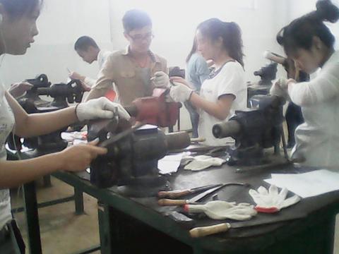 在俞学津老师的悉心指导下,汽营(二)班的同学们迫不及待的投入了分配的任务中。不管男生女生,大家都耐着性子,打着十二分的精神,努力完成老师安排的任务。班上的不少女同学都使出浑身力气锯着钢板,干起活来丝毫不比男生逊色。辅导员张记老师也亲临实训现场,提醒大家在实训中注意安全,鼓励大家努力完成任务。