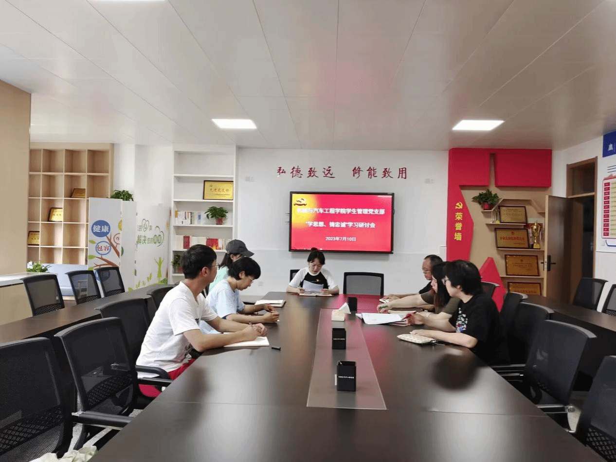 7月10日,机械与汽车工程学院学生管理党支部召开“学思想、铸忠诚”学习研讨会。本次研讨会由学生管理党支部书记倪子旭主持,全体党员围绕习近平总书记关于“千万工程”和“浦江经验”两个重要批示精神进行学习研讨。