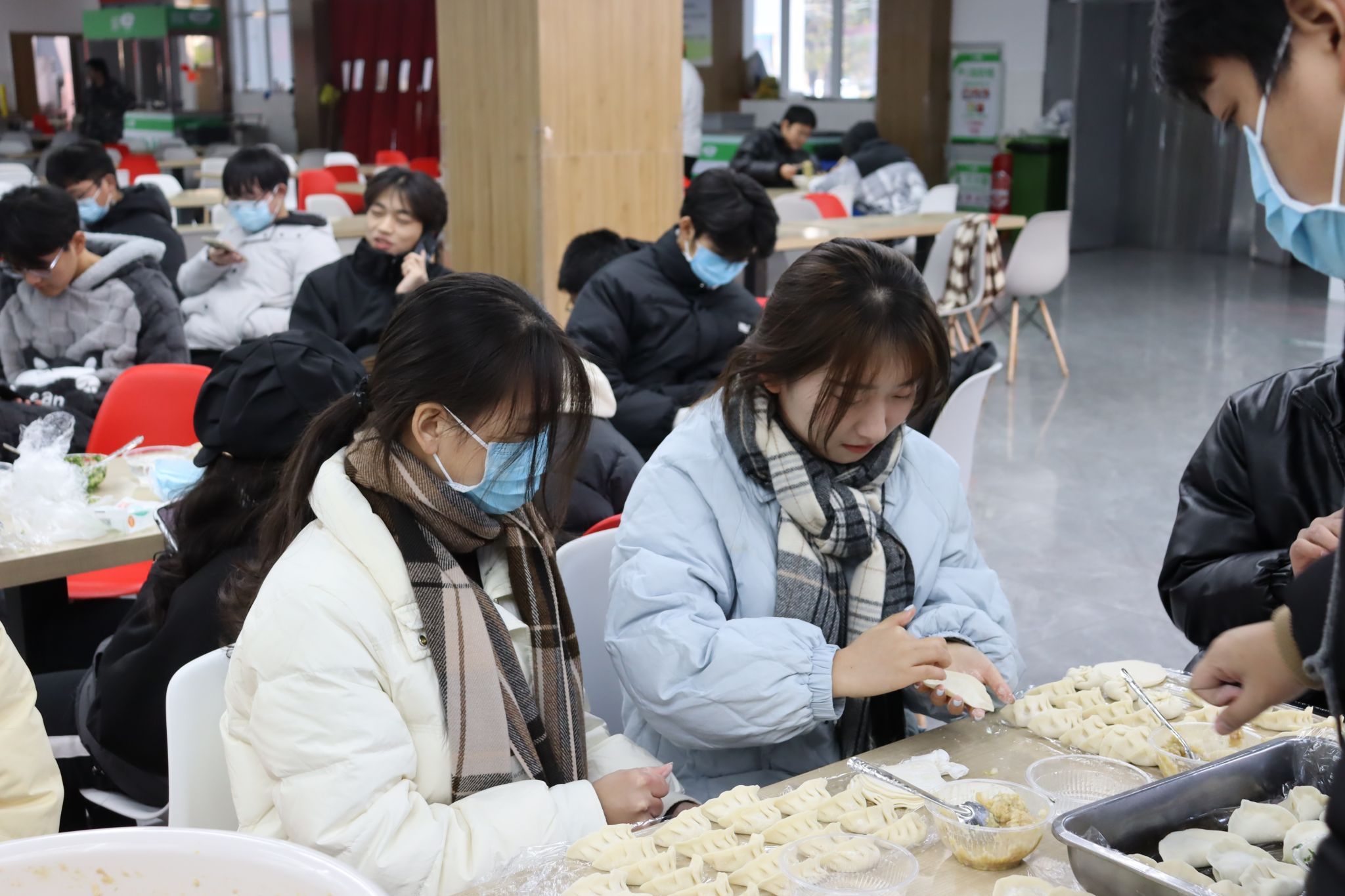 包饺子既是一门厨艺,也是一份情感的传递。大家一边交流分享包饺子的技巧,一边探索有创意的饺子造型,整个现场洋溢着欢声笑语。天气虽然寒冷,人心却是热流涌动。通过相互协作,相互配合,大家将饺子包得饱满圆润,精致美观。