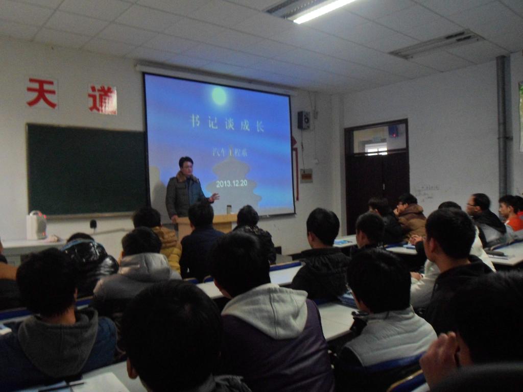 2013年12月20日下午,汽车工程系举办书记谈成长专题学习交流会,汽车工程系13级学生参加学习交流会。
