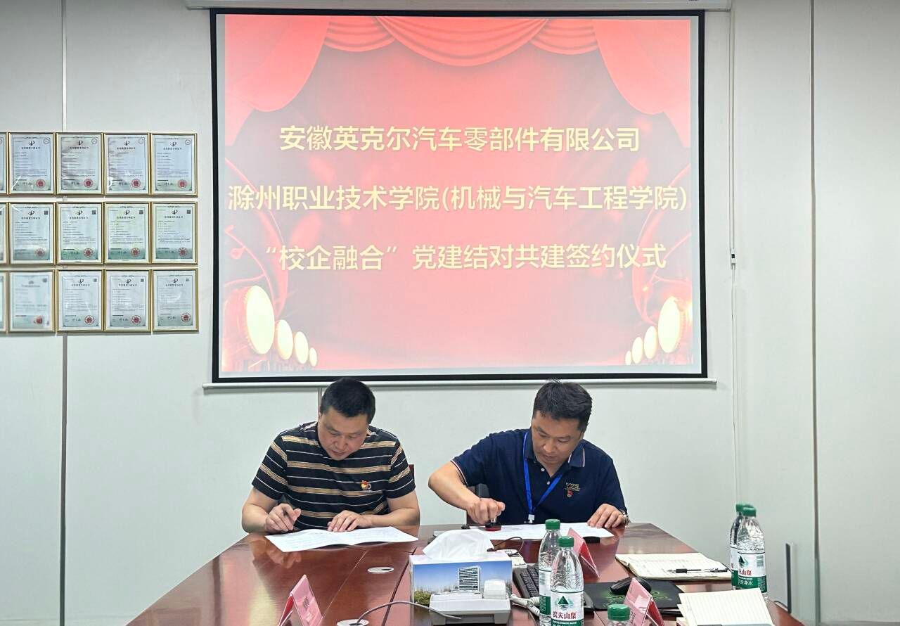 为深入贯彻落实党的二十大精神,深化产教融合、校企合作,创新基层党建工作载体,5月29日下午,机械与汽车工程学院党总支副书记吴佳佳、院长杨章林带队,汽车工程系党支部书记贾会星及支部党员代表一行,专程前往安徽英克尔汽车零部件有限公司,与该公司党支部正式签署党建结对共建协议。