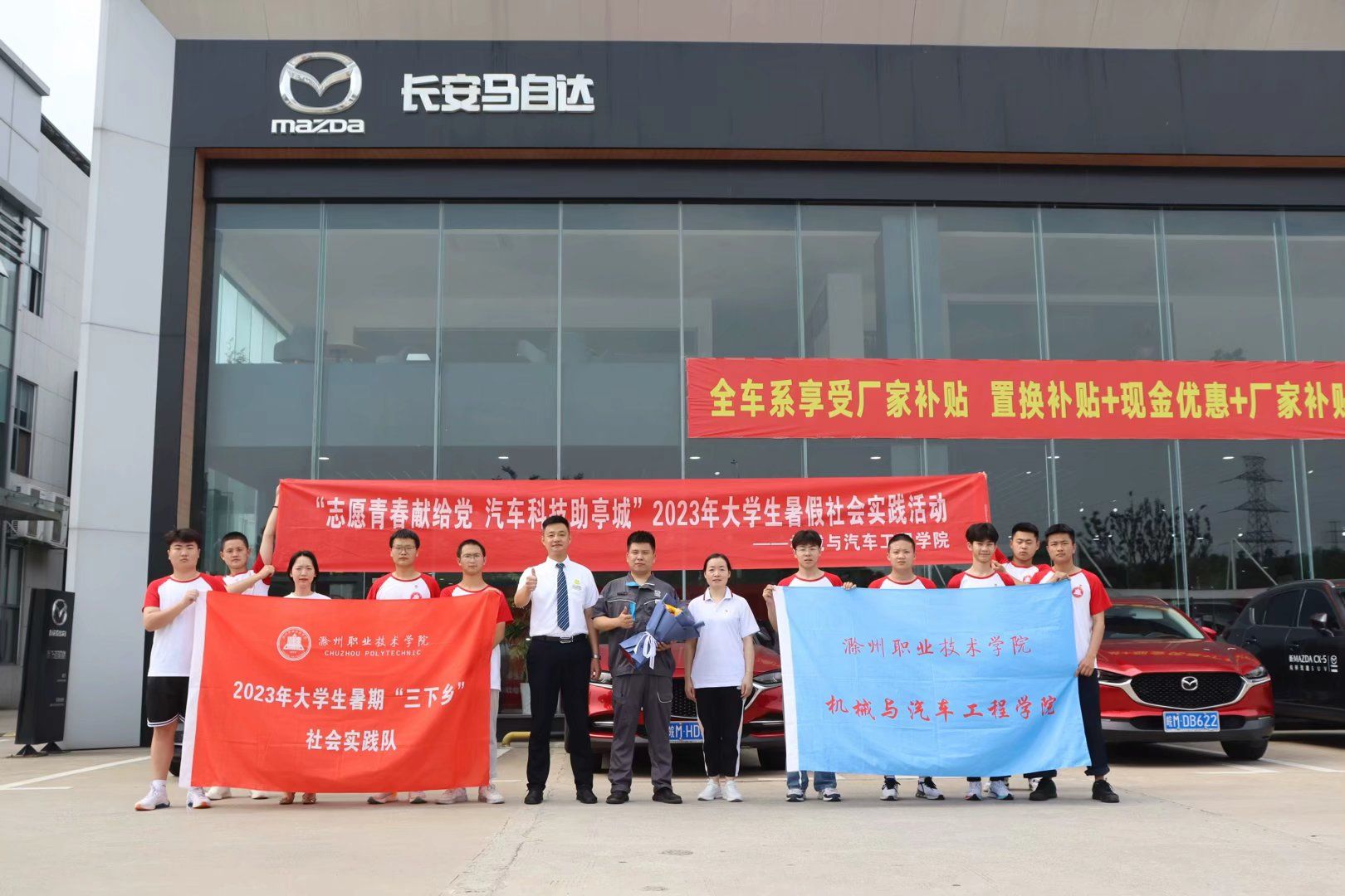 6月21日上午,awc777万象城娱乐官网机械与汽车工程学院青春引擎实践小分队在倪子旭、陈琴两位老师的带领下前往滁州马自达4S店开展暑期“三下乡”社会实践活动。