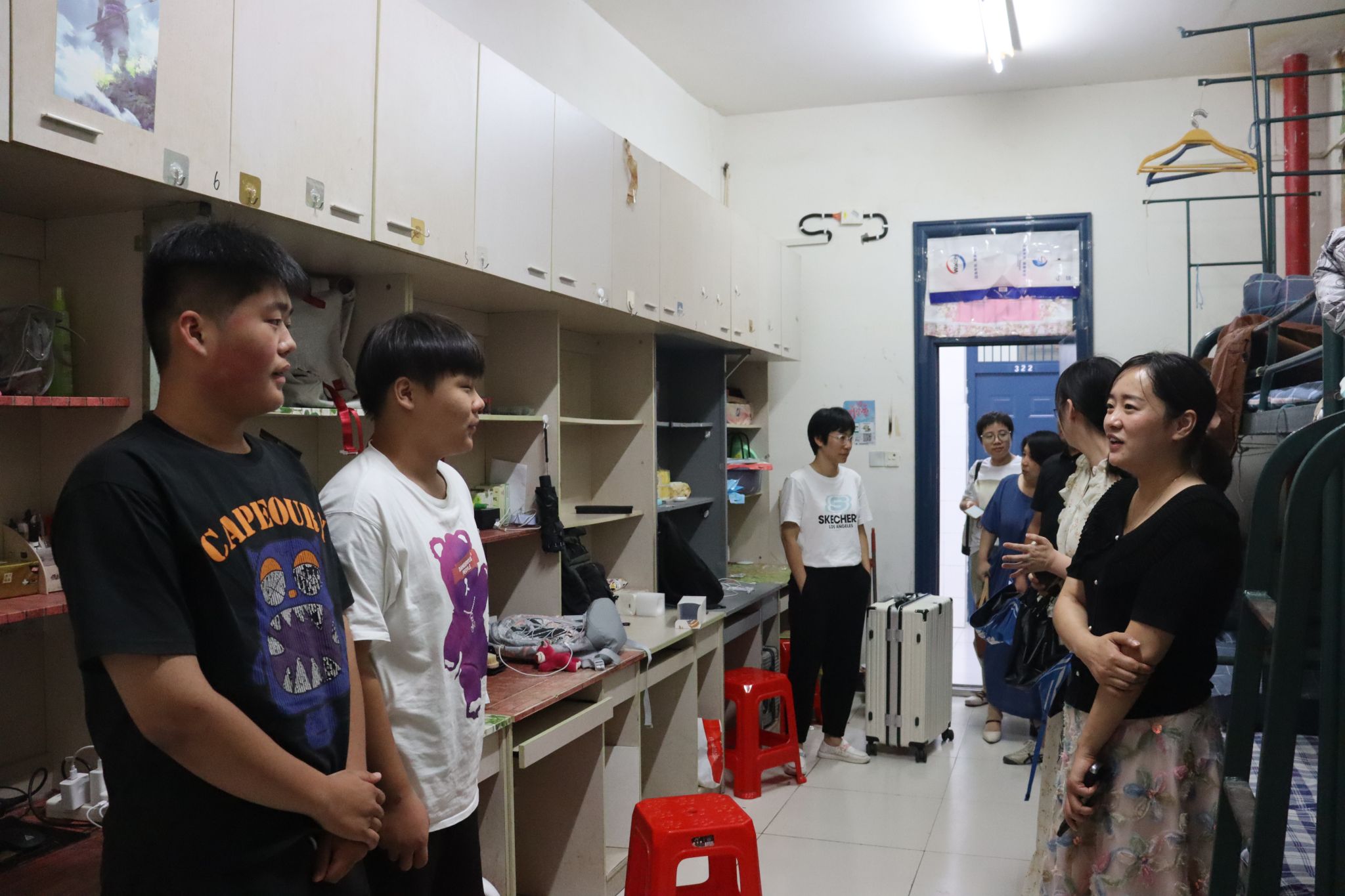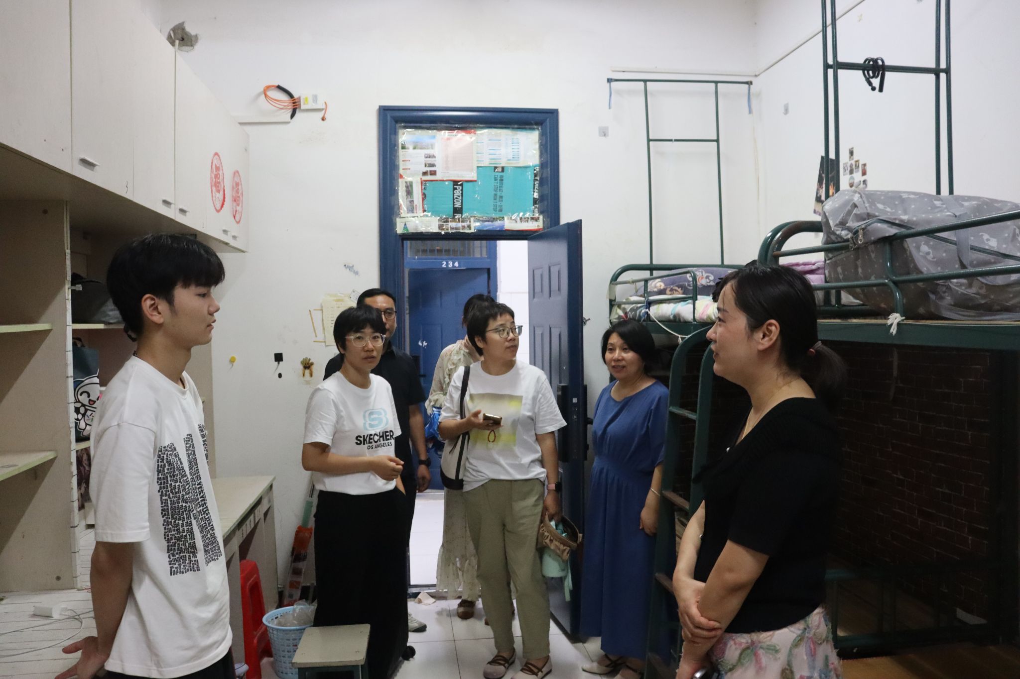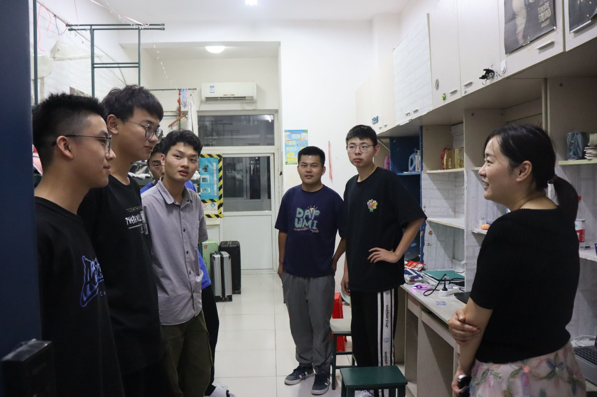 对于刚刚来到机械与汽车工程学院的“萌新”们来说,宿舍普遍是大家关注的焦点之一。为了保障新生入住条件,解决住宿所遇问题,9月8日晚,机械与汽车工程学院党总支书记朱婷婷、党总支副书记刘杰、党总支副书记吴佳佳以及2023级新生辅导员程梅老师、胡新月老师、李艳梅老师一起走进9号楼新生宿舍,走进2023级新生的宿舍慰问新生。