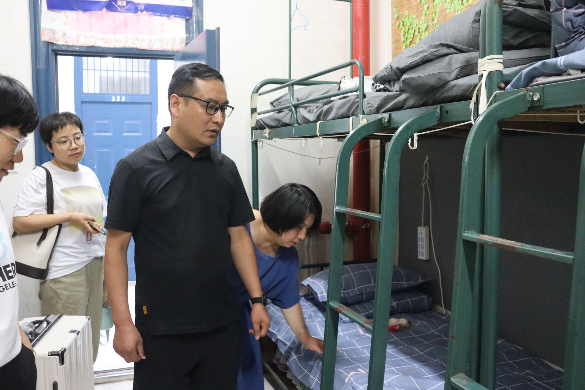 查寝过程中,朱婷婷亲切问候大家的入住情况,询问同学们生活中是否有任何问题,并告诉同学们要互帮互助、共同进步。