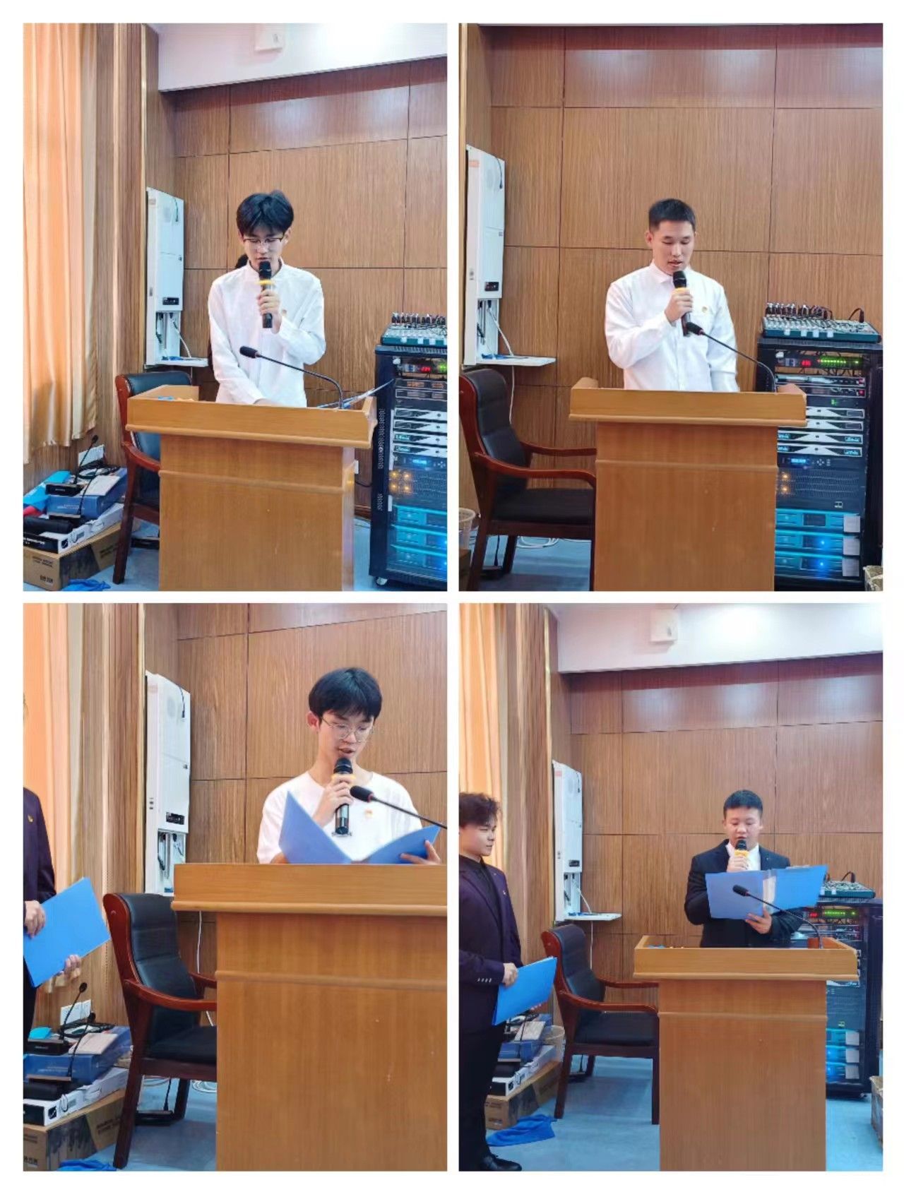 伴随着庄严的国歌,本次换届大会拉开序幕。学院团总支书记倪子旭在开场致辞中对我院团学组织过去一年的工作成绩进行了全面总结,并对上届团学干的辛勤工作给予了高度肯定。上届团总支副书记唐家兴和学生会主席刘凯凯分别发表了精彩的述职报告,回顾了他们在职期间的工作亮点与成就。张记老师宣布新一届团总支和学生会的拟任命名单,并为他们隆重举行了聘任仪式。新一届团总支副书记王建建和学生会主席陈添澳上台发言,分享他们未来的工作目标和规划,并表示将全力以赴为学院团学组织的工作与发展贡献力量。学院党总支副书记吴佳佳发表讲话,对新一届团学干提出了殷切期望。她强调,团学干部要以身作则,做到求真务实,成为同学们的榜样,不断提升自身的协调、沟通和写作能力,力争成为优秀的学生领袖。她希望团学干部们能够不忘初心、团结协作、虚心学习更好的为学院师生提供服务。