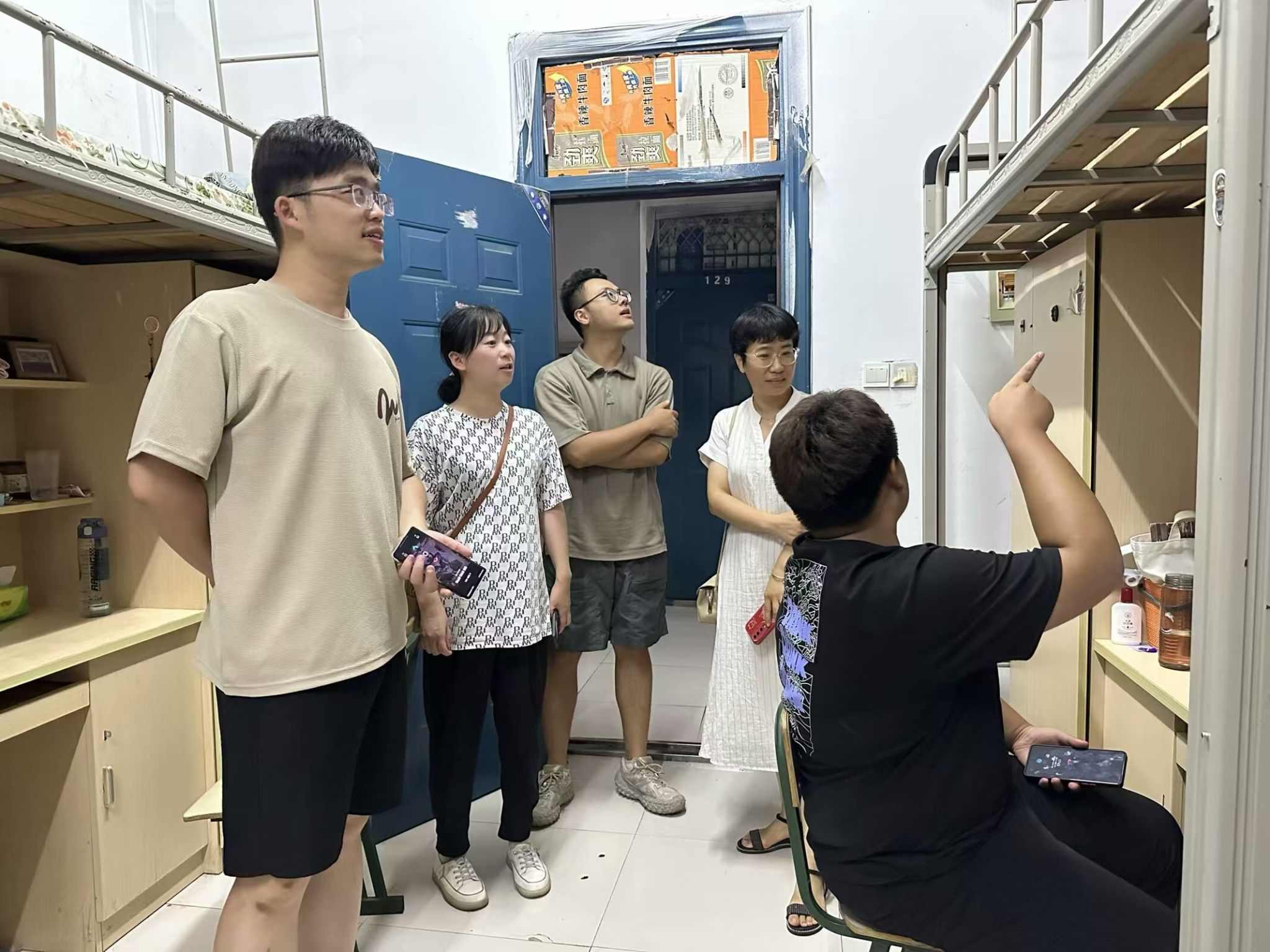 吴佳佳带领全体新生辅导员依次走访新生宿舍。了解新生们的基本情况,在生活中是否遇到问题,在学校中能否适应等。通过这一系列的细致入微的询问,辅导员们不仅对新生们有了更为全面的了解,同时也体现了学院对每一位新生的重视与关爱。