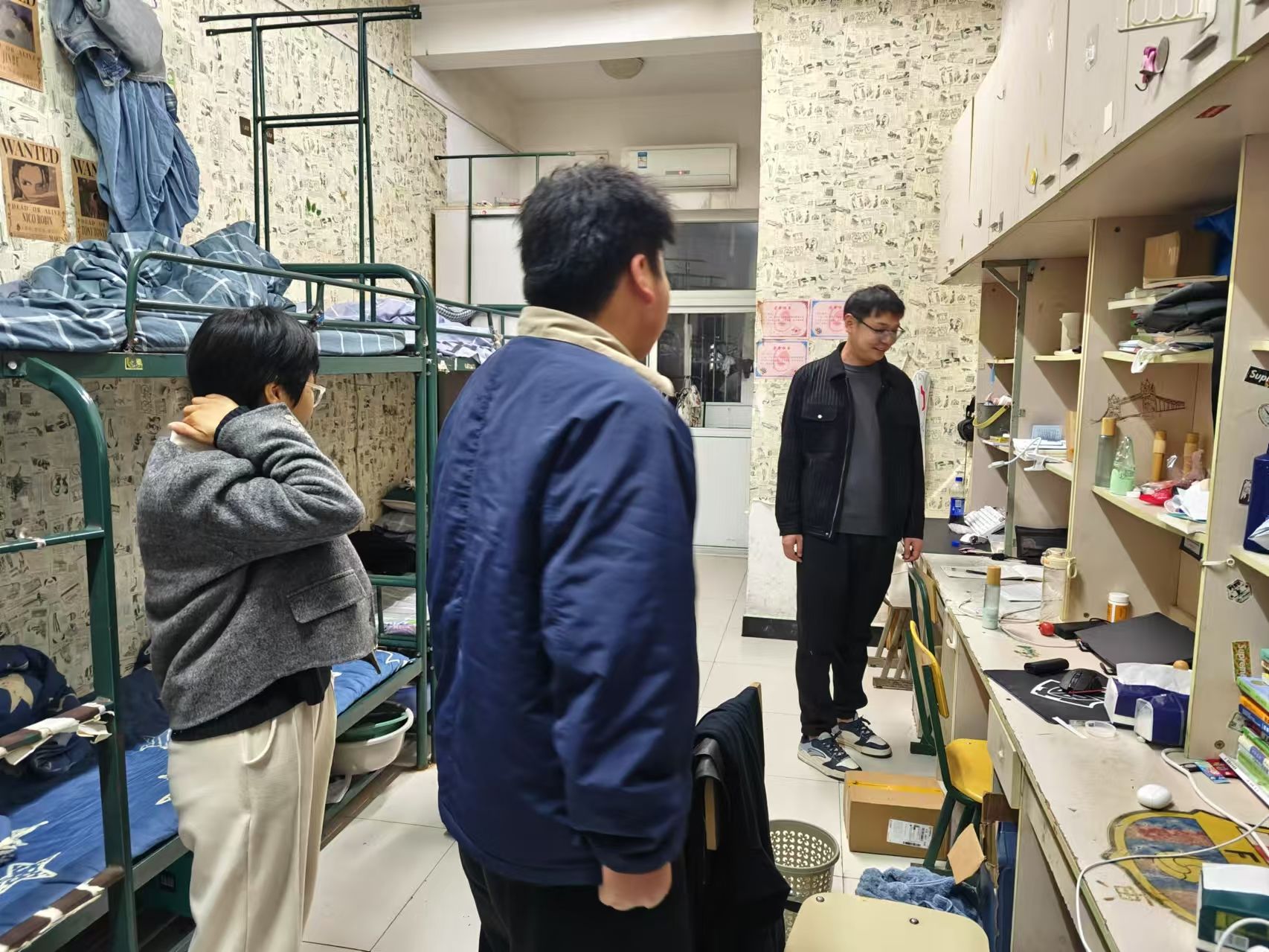 为深入了解学生生活状况,拉近师生间的距离,机械与汽车工程学院党总支副书记吴佳佳、辅导员刘旭冉于2024年11.23日深入学生宿舍开展“我与学生面对面”活动。