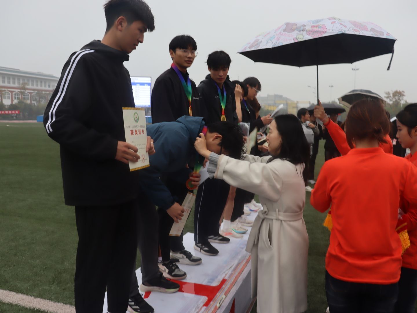 除了竞技赛事,赛场内外处处洋溢着团结协作的氛围。志愿者们坚守岗位,裁判们公正执裁,师生观众呐喊助威声,共同构成了校园里最鲜活的风景线。这场运动会既是竞技的舞台,更是凝聚校园力量、展现青春风采的纽带,为校园生活留下了浓墨重彩的一笔。