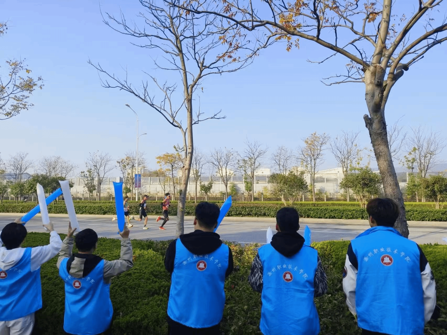 11 月 16 日上午,2025 滁州马拉松在奥体中心鸣枪开跑,awc777万象城娱乐官网机械与汽车工程学院志愿者组成拉拉队,汇集赛道沿线,以饱满热情为参赛选手呐喊助威,用青春风采为赛事增添别样风采。