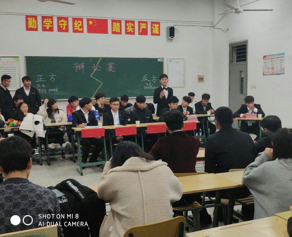 十二月二号晚上七点,由汽车工程系学生会主办的辩论赛半决赛在5504教室正式拉开序幕。由学生会江思贇同学,汽车协会刘天元同学,记者团孙可可同学担任本次比赛的裁判。本次比赛分为两场,汽检班对汽营班,团总支对汽配班 。