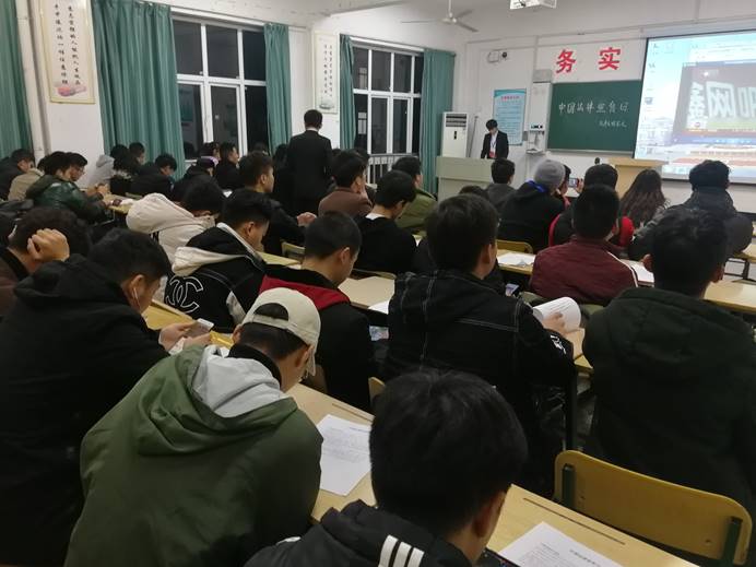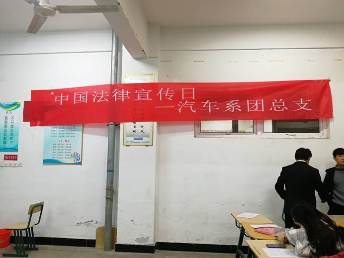 为深入开展法制宣传教育,弘扬社会主义法制精神,进一步培养学生法制观念,awc777万象城娱乐官网汽车工程系团总支于2018年12月4日在5213教室开展了一次法制宣传活动,团总支全员参加。