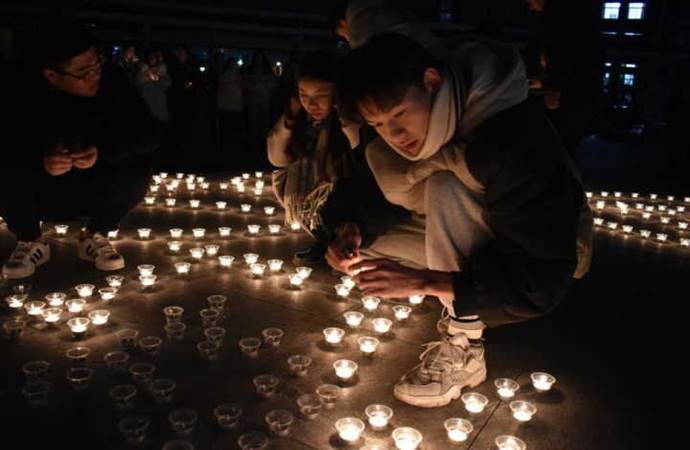 活动开始,几名同学有序的点亮国旗下的蜡烛,台下的同学也纷纷点亮手上的蜡烛,随后主持人向同学们叙述了那段历史,并带领在场同学进行了三分钟的默哀。仪式结束后,同学们们纷纷自发的在横幅上签下名字,悼念南京大屠杀遇难同胞。随后前往南阶205观看了电影《南京!南京!》,再次重温了那段历史。
