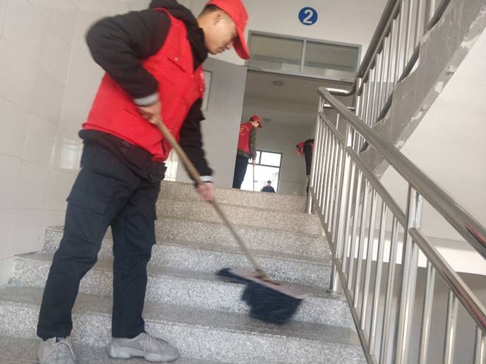 同学们身穿志愿者服装来到5号楼,对楼梯、走廊以及教室进行了一一清理,香烟头,包装纸等未被清理的垃圾被同学们逐一清扫。并且对在楼梯口吸烟的同学们进行劝导,告诉他们教学楼内禁止吸烟。