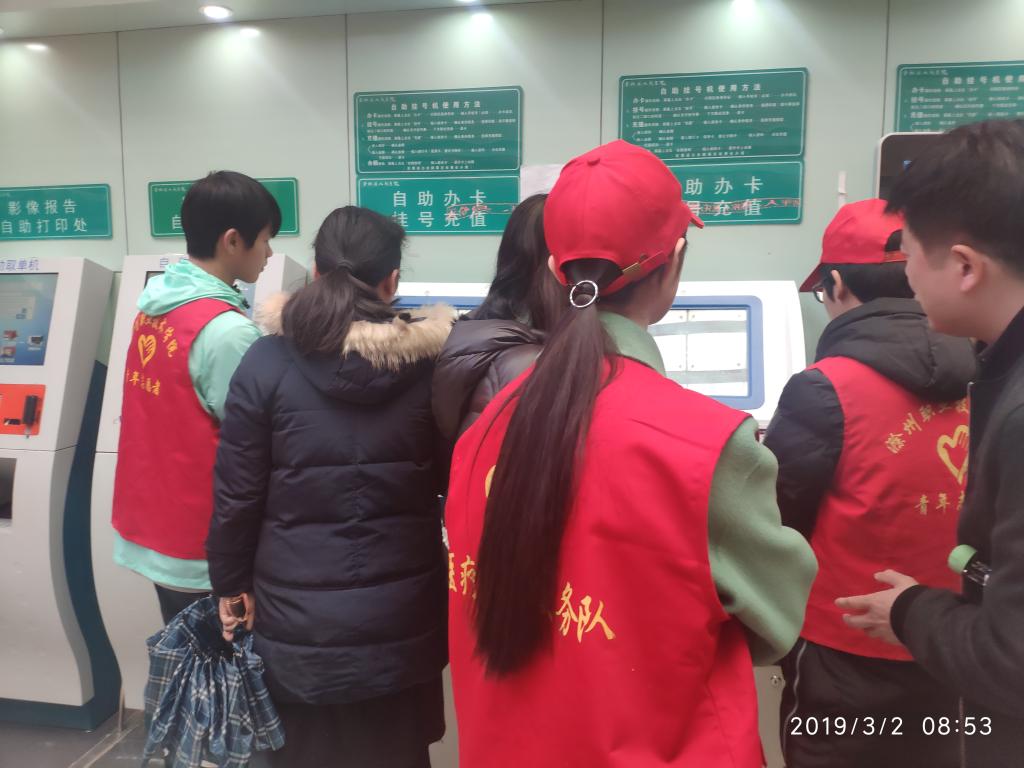 虽然清晨飘起了细雨,但是志愿者们依旧热情饱满,有序地前往医院。在医院老师的简单介绍之后,志愿者们纷纷投入到了各自的岗位,帮病人指路、挂号、充值或取病历单,忙碌的身影充斥着整个医院。身着“awc777万象城娱乐官网青年志愿者”红马甲的年轻身影为医院内增添了一道亮丽的风景线,病人和家属或停驻微笑,或低声询问:“你们是什么人?”。获得帮助的病人一句谢谢更让志愿者们觉得倍感欣慰。