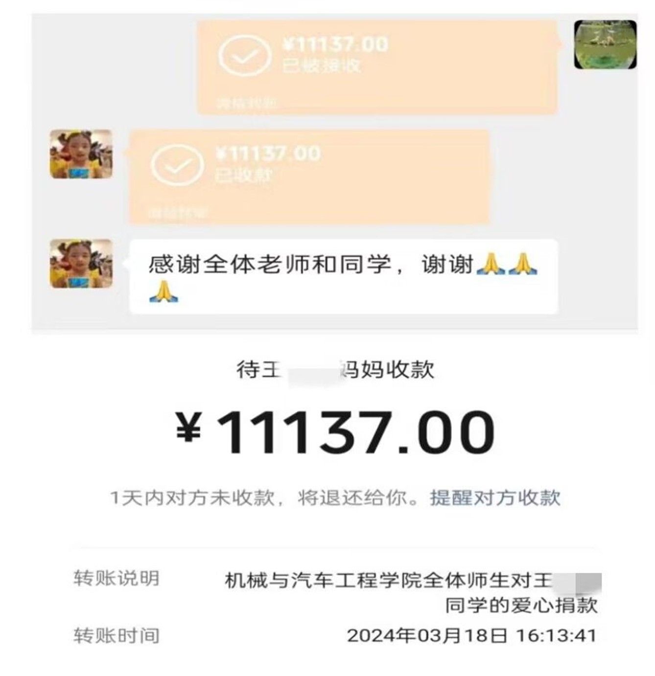 献出一份爱心,托起一份希望。机械与汽车工程学院红十字分会完成了对机汽学院23级王同学的爱心捐款。献出一份爱心,托起一份希望。此次的爱心捐款活动是希望大家能将这种乐于助人的精神一直传递下去,去力所能及的帮助更多需要帮助的人,让关爱之花在世间绽放,温暖每一个需要被关爱的心灵。