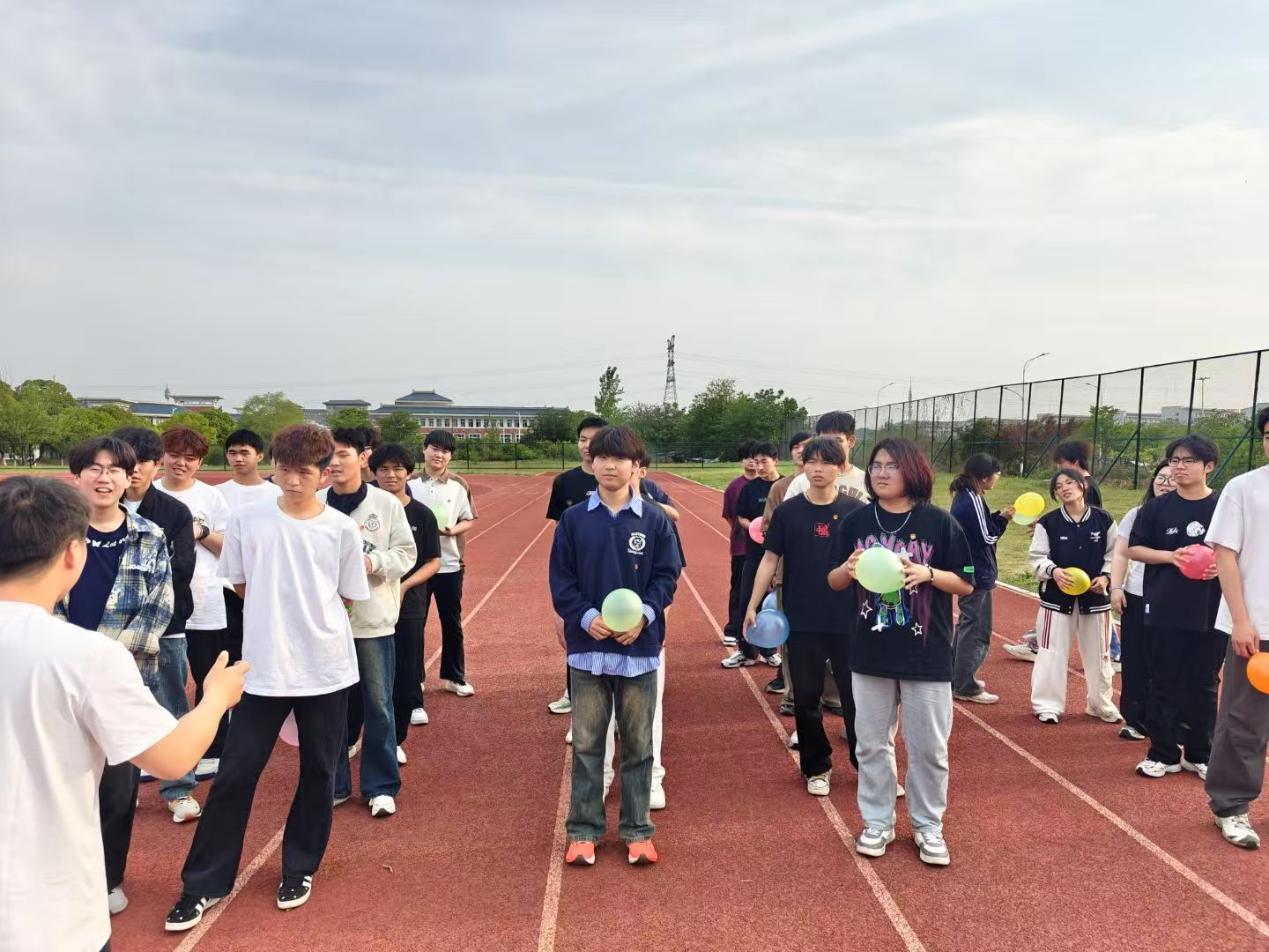 活动在学校操场开展,首先进行的是接力跑项目。各参赛队伍成员们精神抖擞、斗志昂扬。随着一声令下,选手们在跑道上展开了激烈追逐。接力跑结束后,是组队捏气球环节,大家在游戏中相互配合、相互鼓励,现场笑声不断。