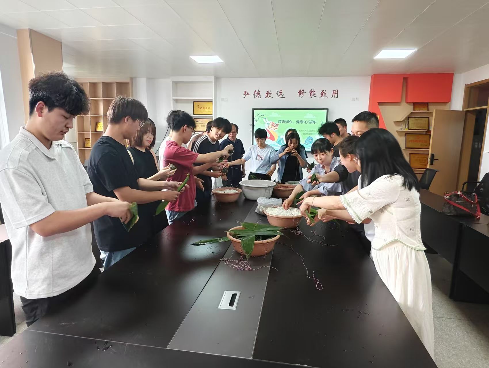 为弘扬中华优秀传统文化,让学生们深入感受端午节的独特魅力,5月28日,机械与汽车工程学院在5210举办“粽香润心 健康‘心’端午师生面对面活动。