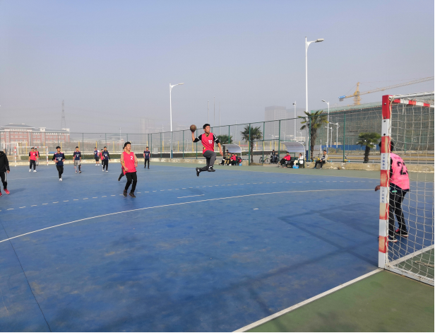 11月28日1点20分在手球场,汽车工程系与机电工程系进行手球比赛的冠军争霸战。