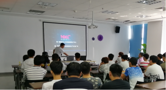 惠科光电科技公司相关工作人员在展厅向同学们介绍了惠科目前的主流产品及公司的发展史,该公司主要生产大尺寸超高清显示面板,随着公司项目投产、爬坡、满产,其HKC TV液晶面板出货量跻身全球前六名,稳居国内第三名。