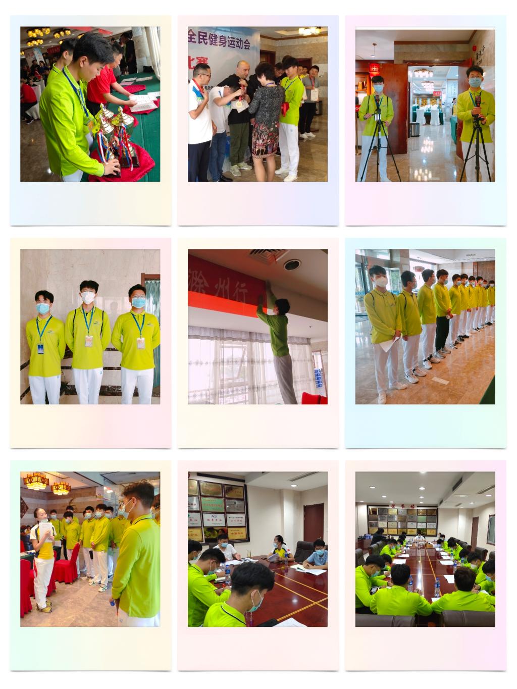 活动前,志愿者们提前到达白云宾馆比赛现场,进行赛前志愿服务活动,及对来自全省的16支参赛代表队进行报到登记,办理入住。十六名志愿者分别负责一支参赛代表队,负责他们的每天体温测量登记,分发餐券、介绍赛场附近的环境、以及滁州本地的一些特色美食和著名景点,提供最全面的、最细节的志愿服务。在大赛开幕式中,志愿者负责会场秩序,协调组委会布置会场;在比赛过程中,志愿者们主要负责参赛运动员的入场前的体温测量和比赛过程中的茶水的配送;在大赛闭幕式时,负责会场的座位排序,以及协助组委会颁发奖牌证书。